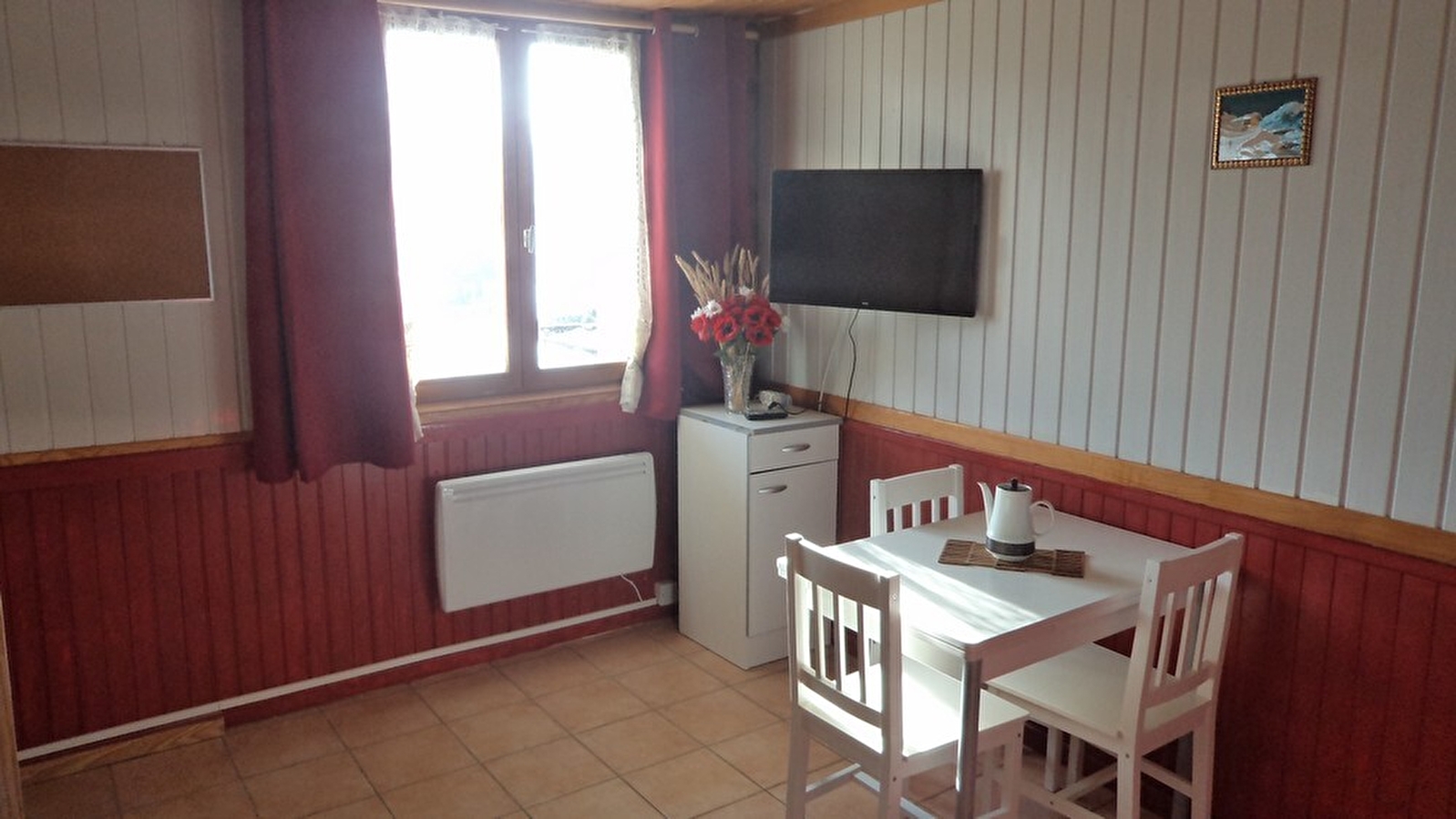 In het hart van de Haut Jura, op een steenworp afstand van het skigebied Marais, klein appartement op de begane grond van het huis van de eigenaren, dat ook andere accommodatie heeft. Aparte ingang. Entree, hal, woonkamer met kleine keukenhoek en zithoek met bank en flatscreentelevisie. Slaapkamer met 1 x 140cm bed (en een kinderbedje) en badkamer met douche en wc. Aangrenzende, niet omheinde tuin met tuinmeubelen en barbecue voor de zomermaanden. Carport en petanqueterrein beschikbaar. Beddengoed niet inbegrepen.