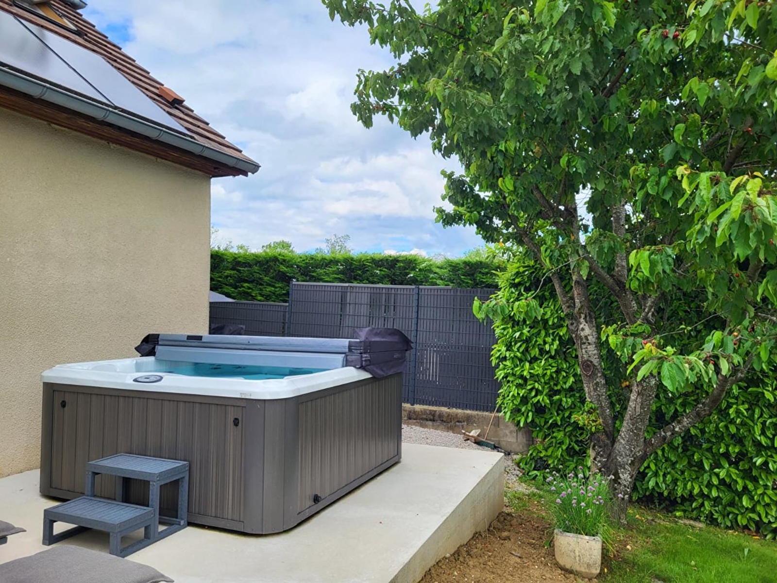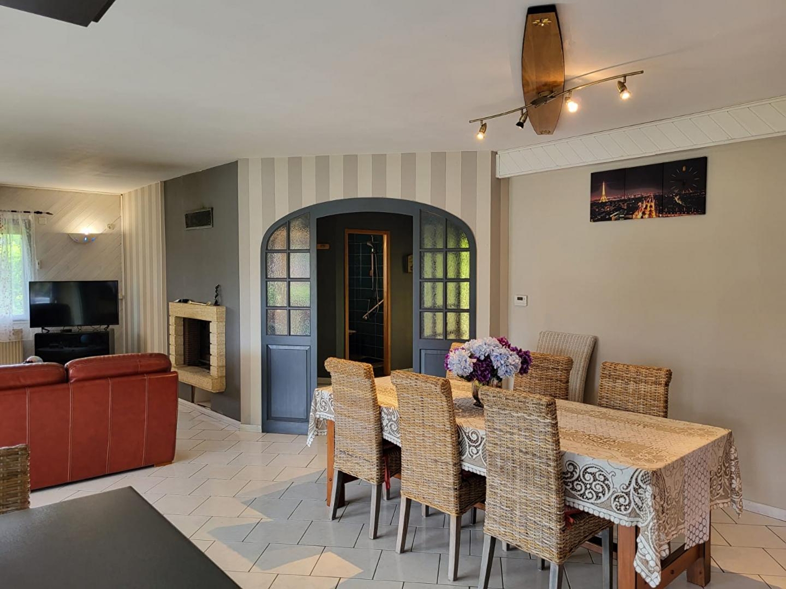 Dit volledig omheinde vrijstaande huis ligt in een rustige laan en bestaat uit een woonkamer op de begane grond met ingerichte keuken, eethoek en zithoek met tv en open haard. De woonkamer heeft directe toegang tot een veranda. Een slaapkamer met een tweepersoonsbed (160*200), een doucheruimte met inloopdouche, een apart toilet en een bijkeuken completeren de begane grond. Boven, een slaapkamer met 1 tweepersoonsbed (140*190), 2 en-suite slaapkamers, een met 1 tweepersoonsbed 140*190 en de tweede met 1 tweepersoonsbed 160*200 en TV. Airconditioning in de slaapkamers. Buiten kun je genieten van het mooie weer op de veranda met tuinmeubilair en ontspannen in de jacuzzi. Ideaal gelegen voor het ontdekken van het kuuroord Lons le Saunier en het Vache Qui Rit museum, het merengebied kan worden bereikt in ongeveer 30 minuten en het watersportcentrum Desnes ligt op 15 minuten afstand.