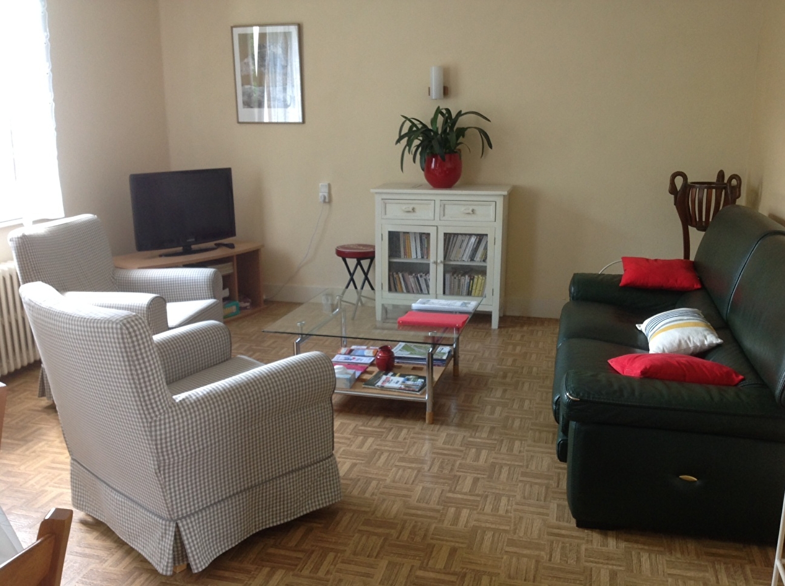 Accommodatie op de 1e verdieping. Keuken, woonkamer, slaapkamer 1: 1 tweepersoonsbed, 1 eenpersoonsbed, slaapkamer 2: 1 tweepersoonsbed, badkamer, aangrenzende omheinde tuin, balkon, tuinmeubilair. Centrale verwarming. Alle kosten inbegrepen.
