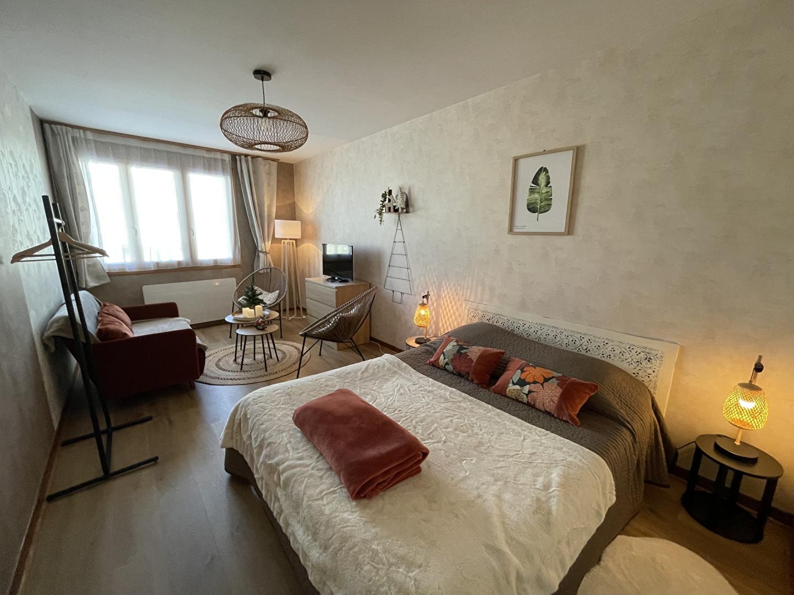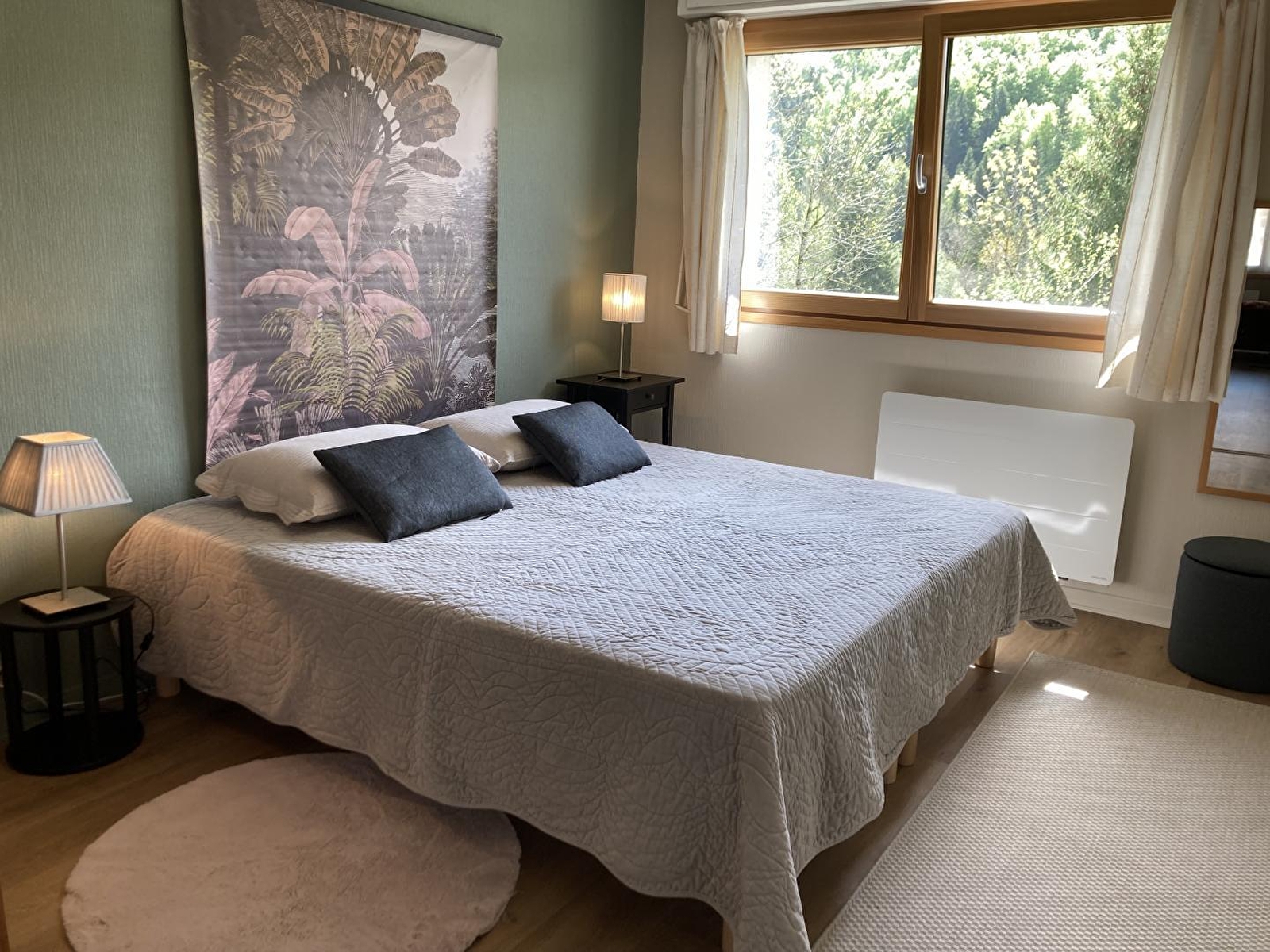 Accommodatie op de eerste verdieping van een dorpshuis met andere appartementen. Keuken, doucheruimte, slaapkamer1:1 tweepersoonsbed, slaapkamer2:1 tweepersoonsbed, aangrenzende niet omheinde tuin, binnenplaats, tuinmeubilair, barbecue, berging voor fietsen en ski's, speelhoek, tafeltennis. Elektrische verwarming. Alle kosten inbegrepen. Mogelijkheid tot het huren van een extra kamer voor 2 personen met eigen badkamer (45€/nacht).