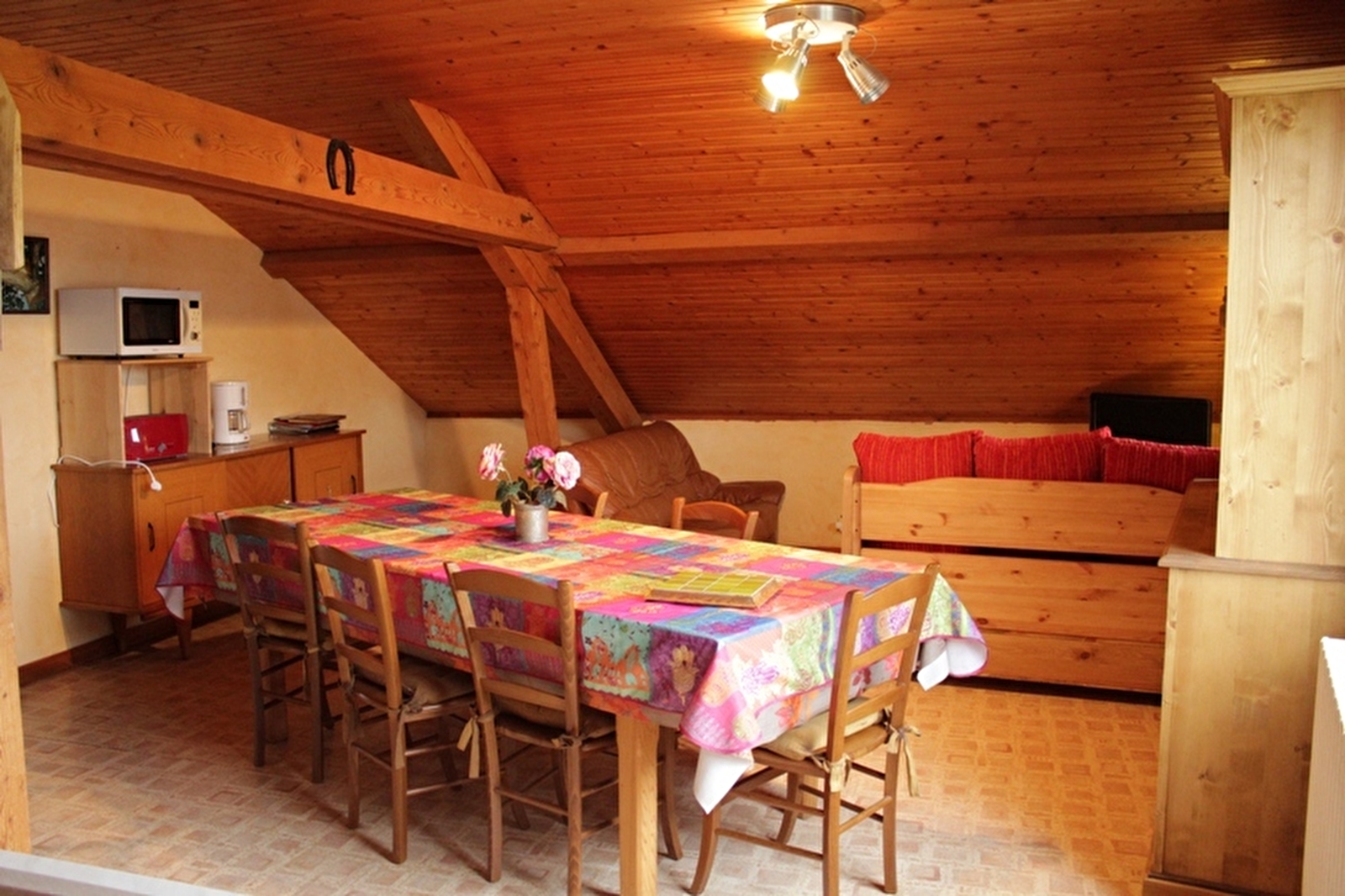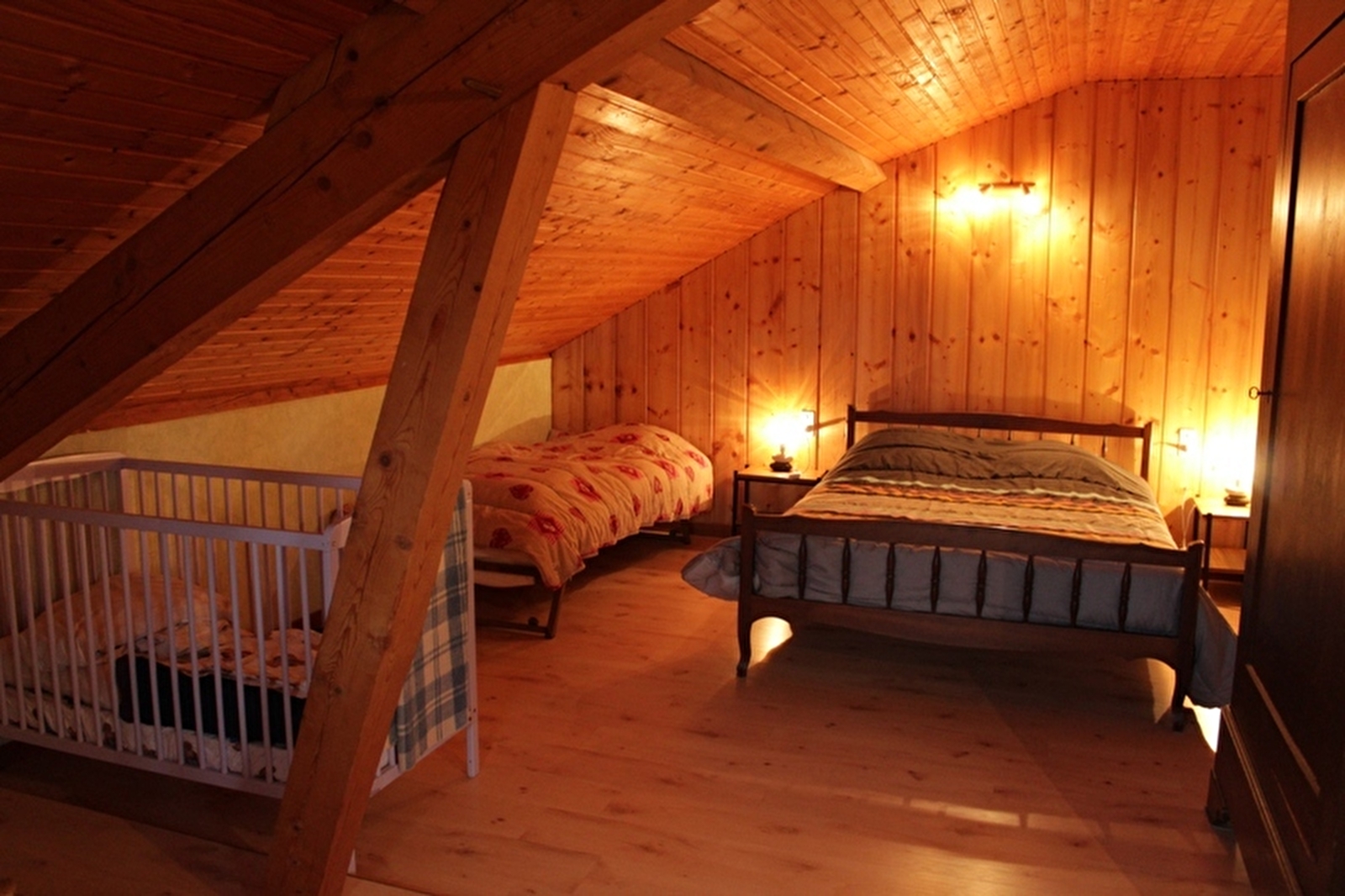 Logement au 2ème étage de la maison des propriétaires avec entrée indépendante. Cuisine-séjour, ch1: 1 lit 2 pl, 1 lit 1 pl, ch2: 1 lit 2 pl, ch3: 1 lit 2 pl, salle de bains. Cour et jardin non clos, salon de jardin, barbecue. Chauffage central et électrique. Charges non comprises. A disposition: chaise bébé, balançoire. Draps: 5€/paire. Option ménage: 35€. Taxe de séjour: 0,50€ par pers et par nuit.