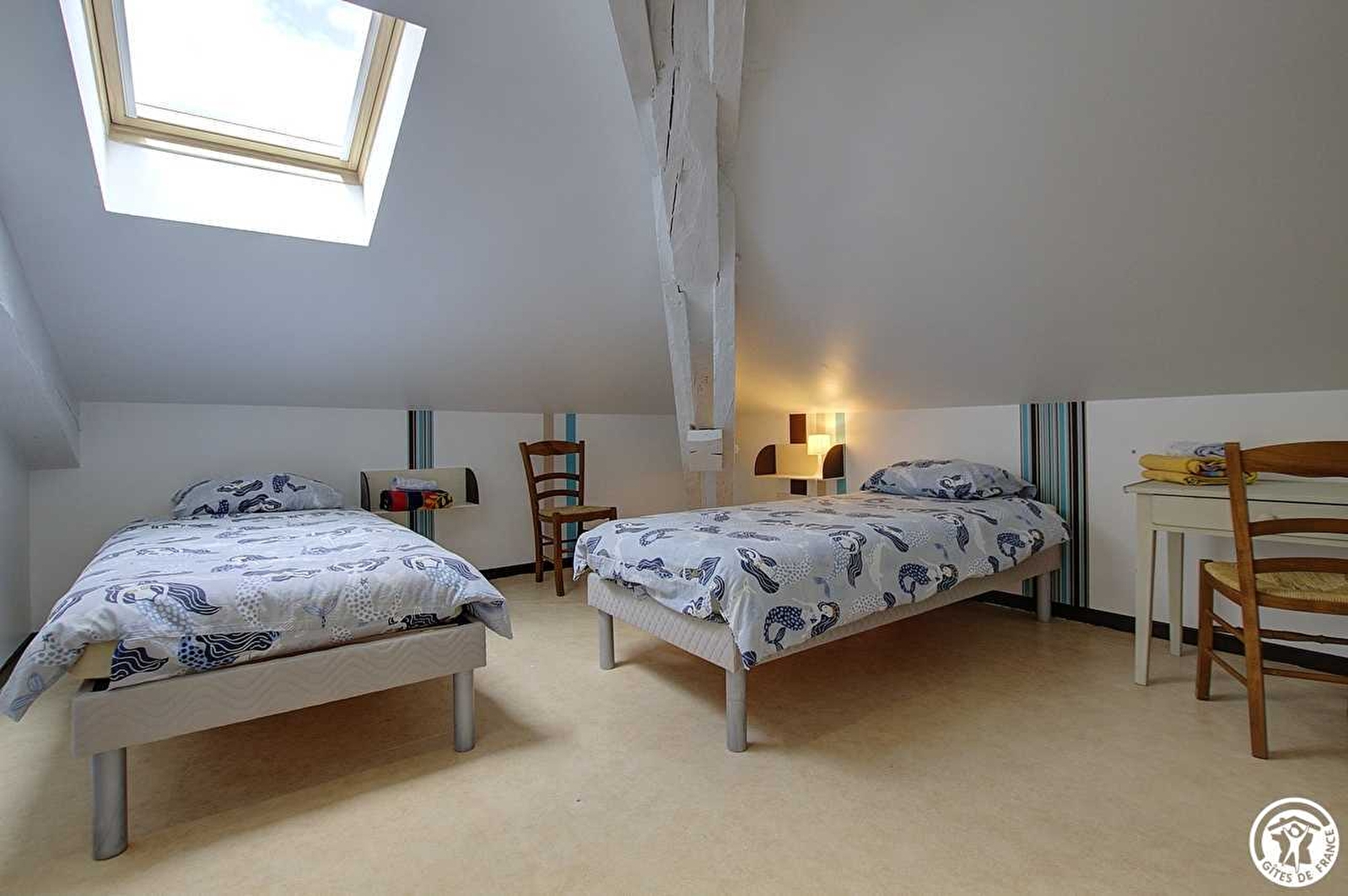 Begane grond: een 5-persoons gîte. Aparte ingang voor elke accommodatie. Mogelijkheid om de twee gîtes te combineren voor 15 personen.