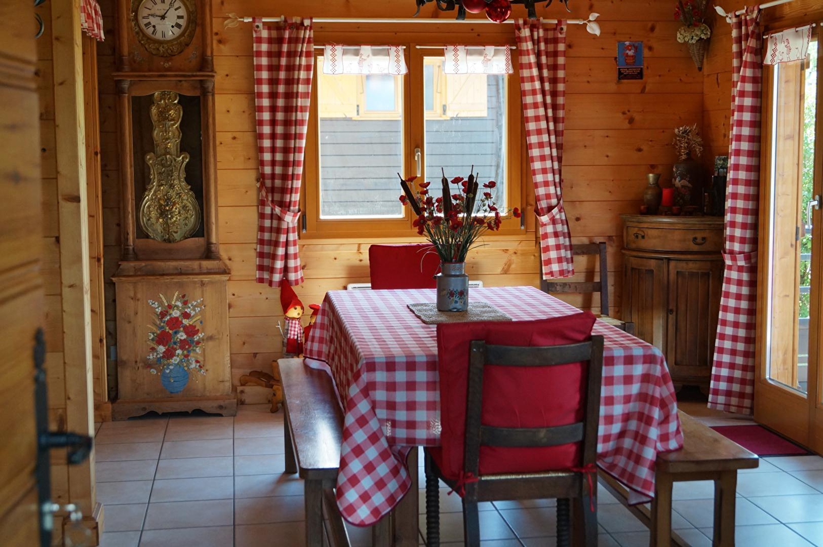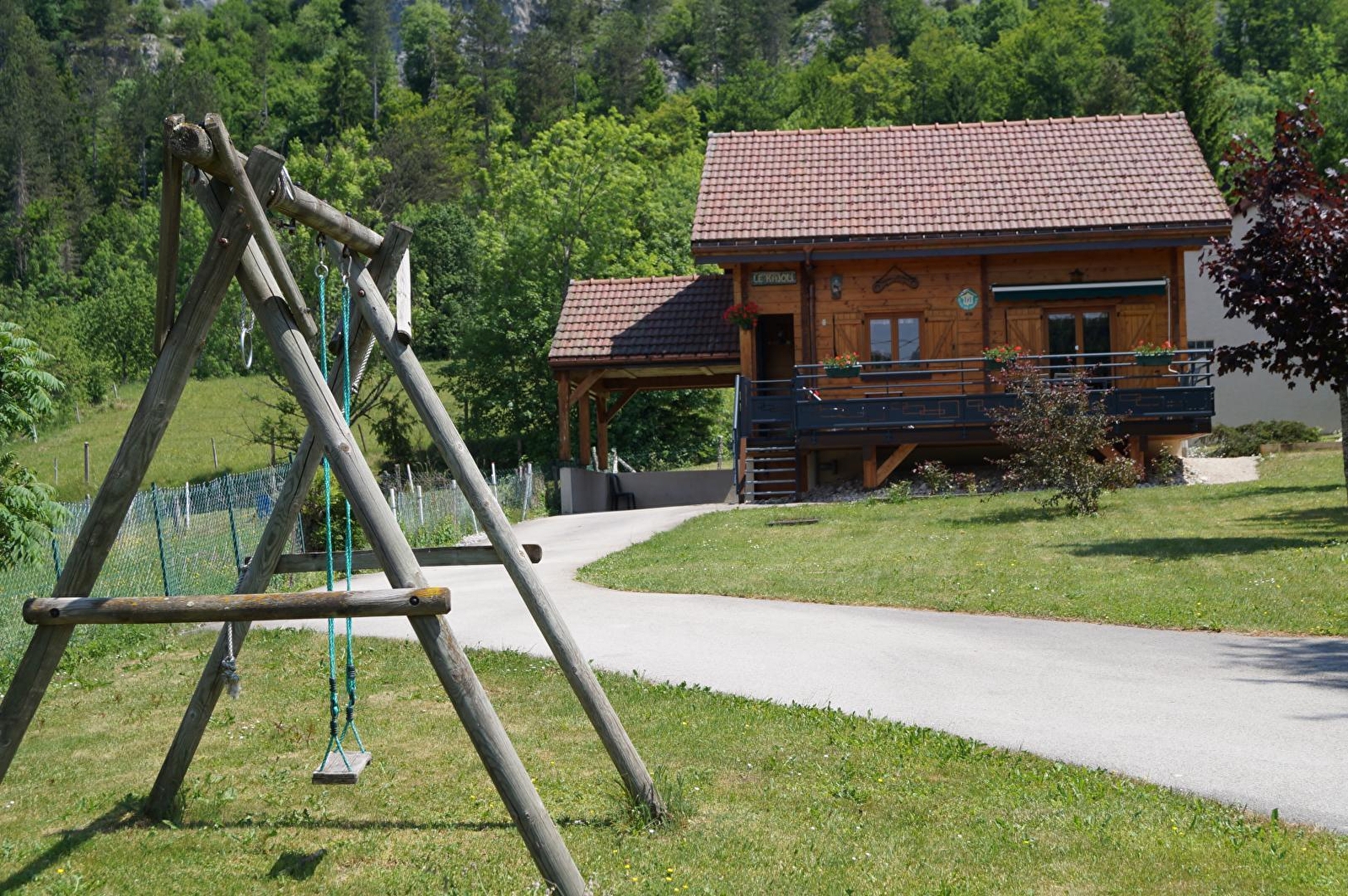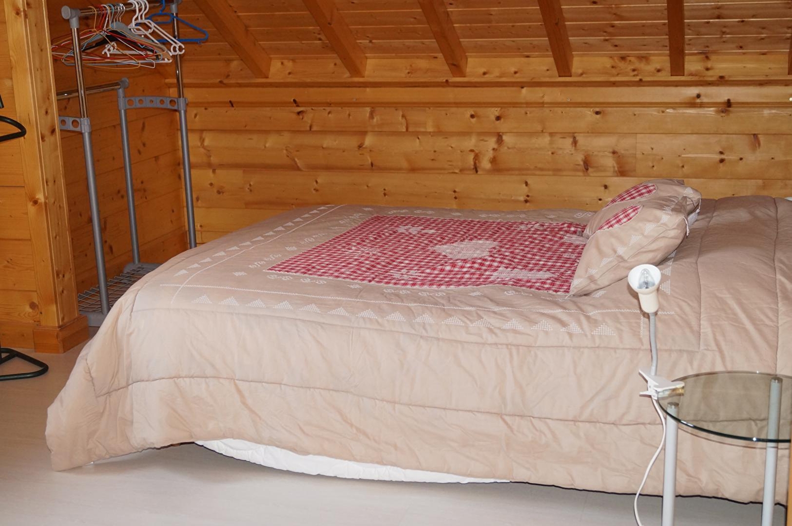 Au centre du petit village, joli chalet indépendant tout neuf, avec cuisine toute équipée (MO), salle à manger avec poêle à gaz, salle d'eau, ch1 : 1 lit 2 pl. A l'étage, salon en mezzanine avec DVD, jeux, canapé lit 2 pl, ch2 : 1 lit 2 pl + 1 lit bébé. Chauffage électrique, terrasse fermée avec salon de jardin, barbecue, portique. Abri voiture non fermé, terrain atteant non clos. Toutes charges comprises. Terrain de boules. Téléphone.