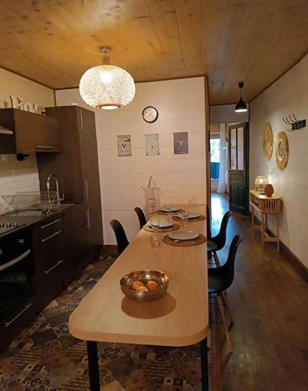 Gezellig, houten appartement op de 1e verdieping met een terras van 17 m² (tafel, ligstoelen en barbecue) met uitzicht op de tuin en het balkon. Een ideale, gezellige plek voor een kort of lang verblijf! Het is gelegen in een stenen huis in het centrum van Clairvaux les Lacs en bestaat uit een woonkamer met een volledig uitgeruste keuken, een eethoek en een woonkamer met tv en een ultracomfortabele slaapbank die speciaal is uitgekozen voor een bed van 140 x 190 per dag dat in 2 seconden in- en uitgeklapt kan worden (nieuw Rapido-systeem), zonder enige moeite! Een slaapkamer met uitzicht op het platteland, bestaande uit 2 eenpersoonsbedden van 90 x 200 die ook kunnen worden aangepast tot een tweepersoonsbed van 180 x 200, met directe toegang tot het terras. De huur is inclusief al het beddengoed (beschermers, hoeslakens, kussenslopen, dekbedovertrekken). De bedden zijn opgemaakt bij aankomst. Verwarming en elektriciteit zijn bij de prijs inbegrepen. Verplichte schoonmaakkosten zijn extra. Openbare parkeerplaats beschikbaar aan de voet van de residentie of op een parkeerplaats op 50 m, winkels op 50 m te voet en meer met strand op 4 minuten te voet. Lac de Clairvaux, met zijn aangelegde strand en omgeving, is een heerlijke plek om nieuwe energie op te doen! Er zijn niet minder dan 6 restaurants in dit toeristische stadje met culinaire specialiteiten uit de Jura. In Clairvaux en omgeving zijn veel bezienswaardigheden en meren te bezoeken, zoals het houtdorp, uniek in Frankrijk, de watervallen van Hérisson, Baume les Messieurs, het meer van Chalain, Château Chalon, de grotten, het regionale park van de Haut Jura, de kloven van Langouette, het meer van Vouglans, enz. Je zult betoverd zijn door de vele wandelroutes in het bos of langs de meren! Je kunt er ook fietsen huren (ook elektrische fietsen) en allerlei buitenactiviteiten doen, zoals kanoën, kajakken, boomklimmen, waterspelletjes, paardrijden, luchtballonvaren, deltavliegen, enz.