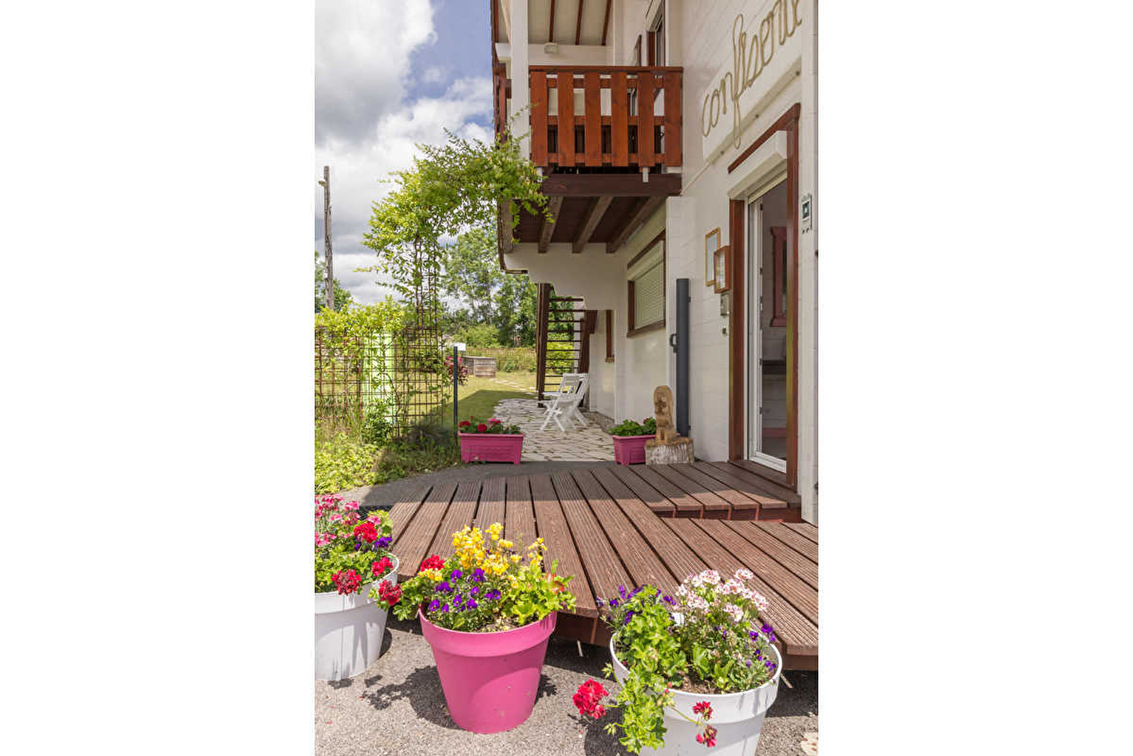 Een buitentrap leidt naar een groot balkon van 13 m², dat toegang geeft tot een volledig uitgeruste open keuken en een woon/eetgedeelte met een slaapbank. Er zijn twee slaapkamers: een met een tweepersoonsbed en een met een tweepersoonsbed en een eenpersoonsbed.