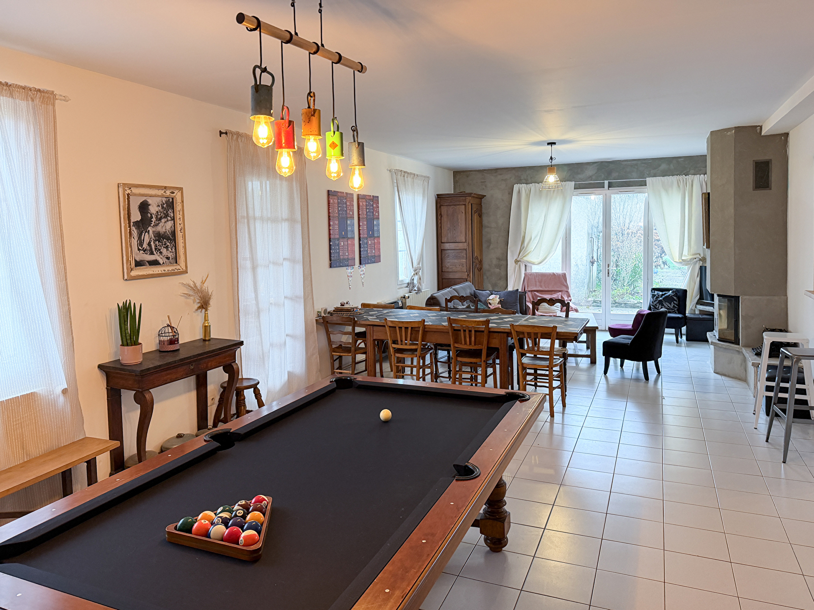 Met 5 slaapkamers en 2 badkamers is er ruimte voor iedereen. In de grote woonkamer, in het hart van het huis, vind je een open haard, gezellige maaltijden en een pooltafel.