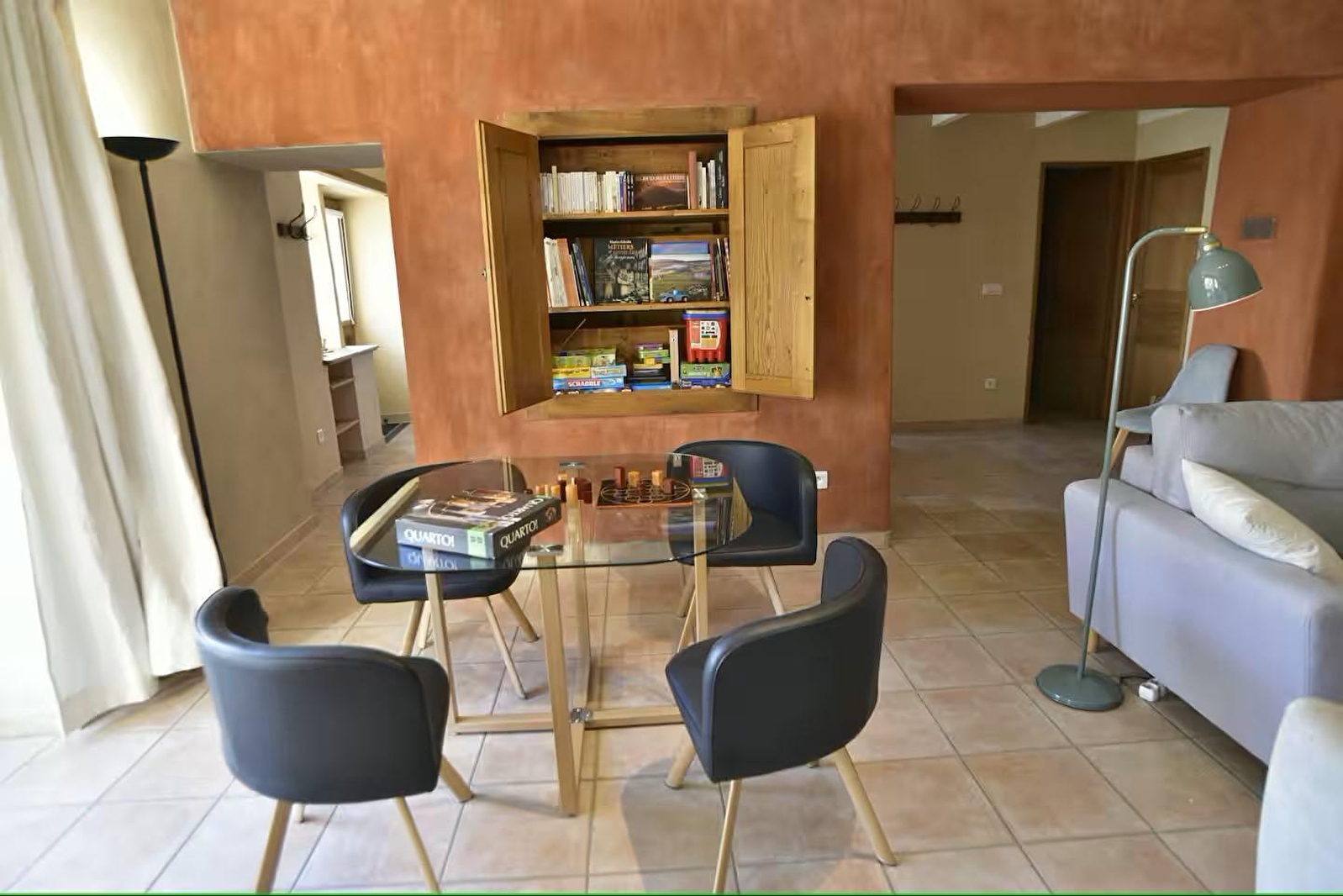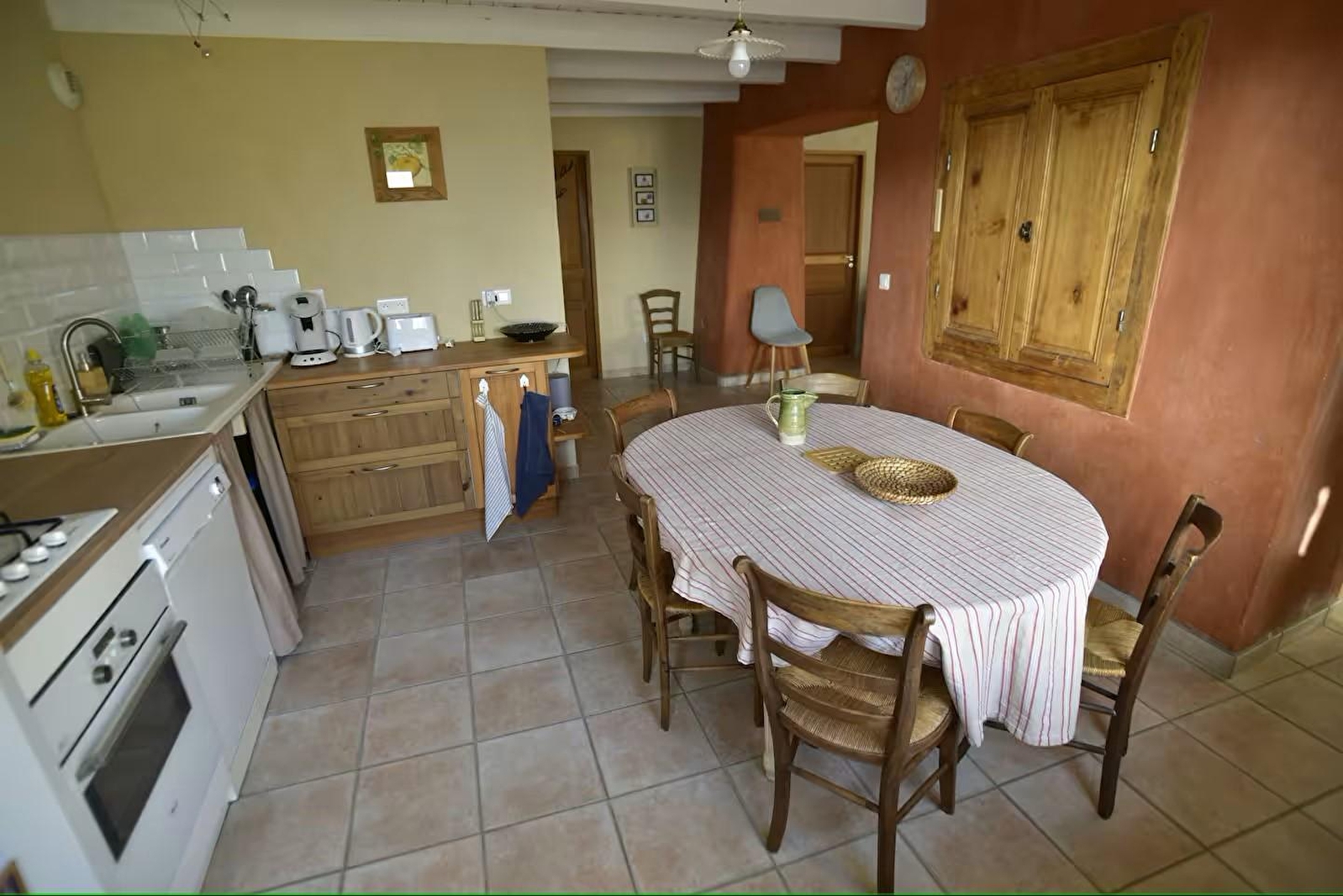 De combinatie van steen, hout en het gebruik van verschillende kalkpleisters (whitewash, tadelakt en 'a fresco' pleisterwerk) geven dit gezellige nest een warme sfeer. Aan elke kamer is veel aandacht besteed. In de keuken vind je bijvoorbeeld de oude muurkast van de boerderij, en de oude bestrating van de stallen is bewaard gebleven als decoratief element in de woonkamer.