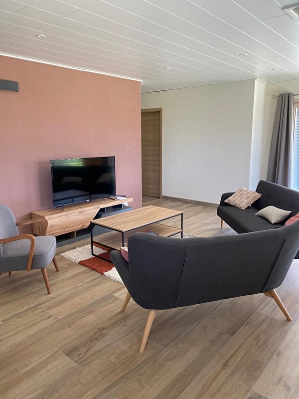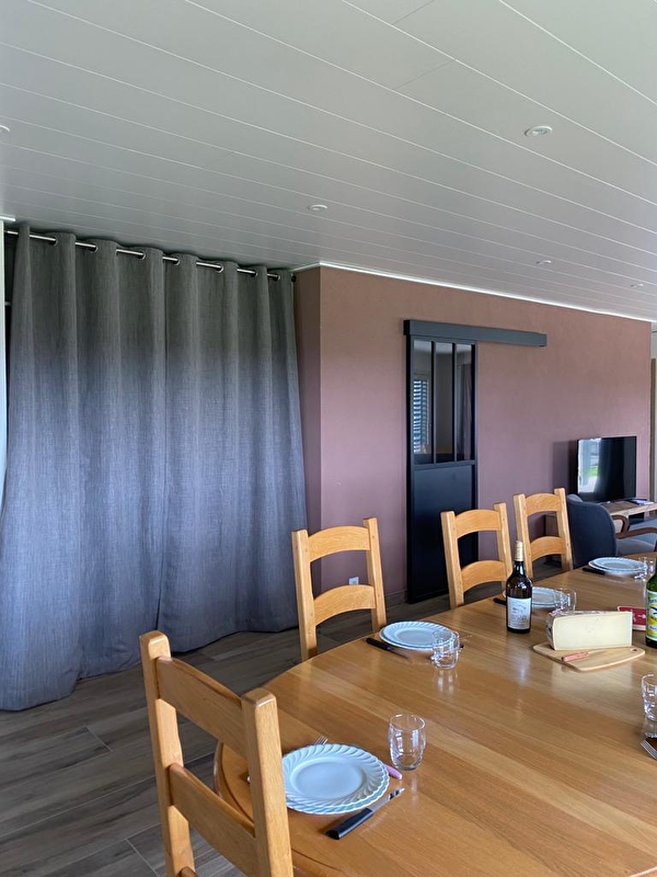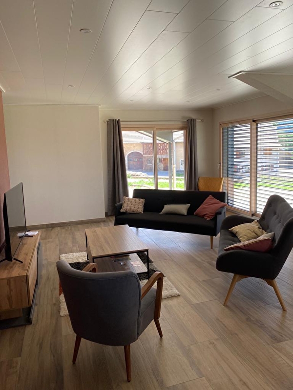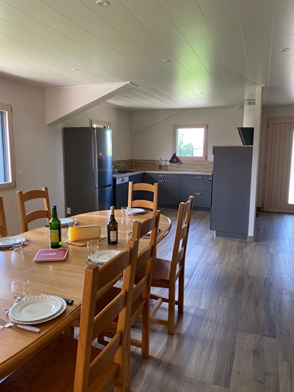 Dit nieuwe gelijkvloerse huis ligt in het hart van het dorp en is perfect om familie of vrienden te ontvangen. Het bestaat uit een grote woonkamer met volledig uitgeruste keuken, eetkamer, woonkamer met tv, 2 slaapkamers met tweepersoonsbedden (160*200), een slaapkamer met 2 aparte bedden (80*200), een slaapkamer met 2 stapelbedden en 1 eenpersoonsbed, 2 badkamers met inloopdouche (een met wc) en een aparte wc. Buiten is er een terras met tuinmeubels, ligstoelen en een barbecue. Er is ook een garage beschikbaar. Ideaal gelegen voor liefhebbers van buitensporten, evenals toeristische trekpleisters zoals de Sources de l'Ain en du Doubs, Lac Saint-Point en de middeleeuwse stad Nozeroy. Plus: deze gîte is toegankelijk voor PBM's.