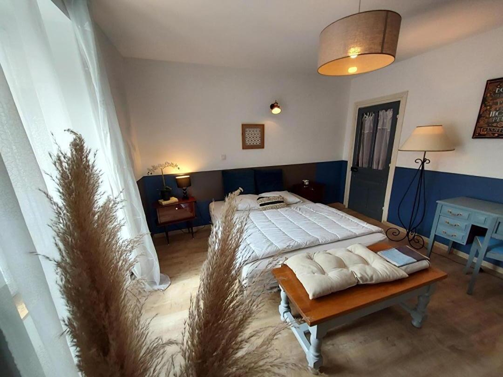 Op de eerste verdieping, twee lichte slaapkamers met werkruimte, een badkamer met douche en kaptafel.