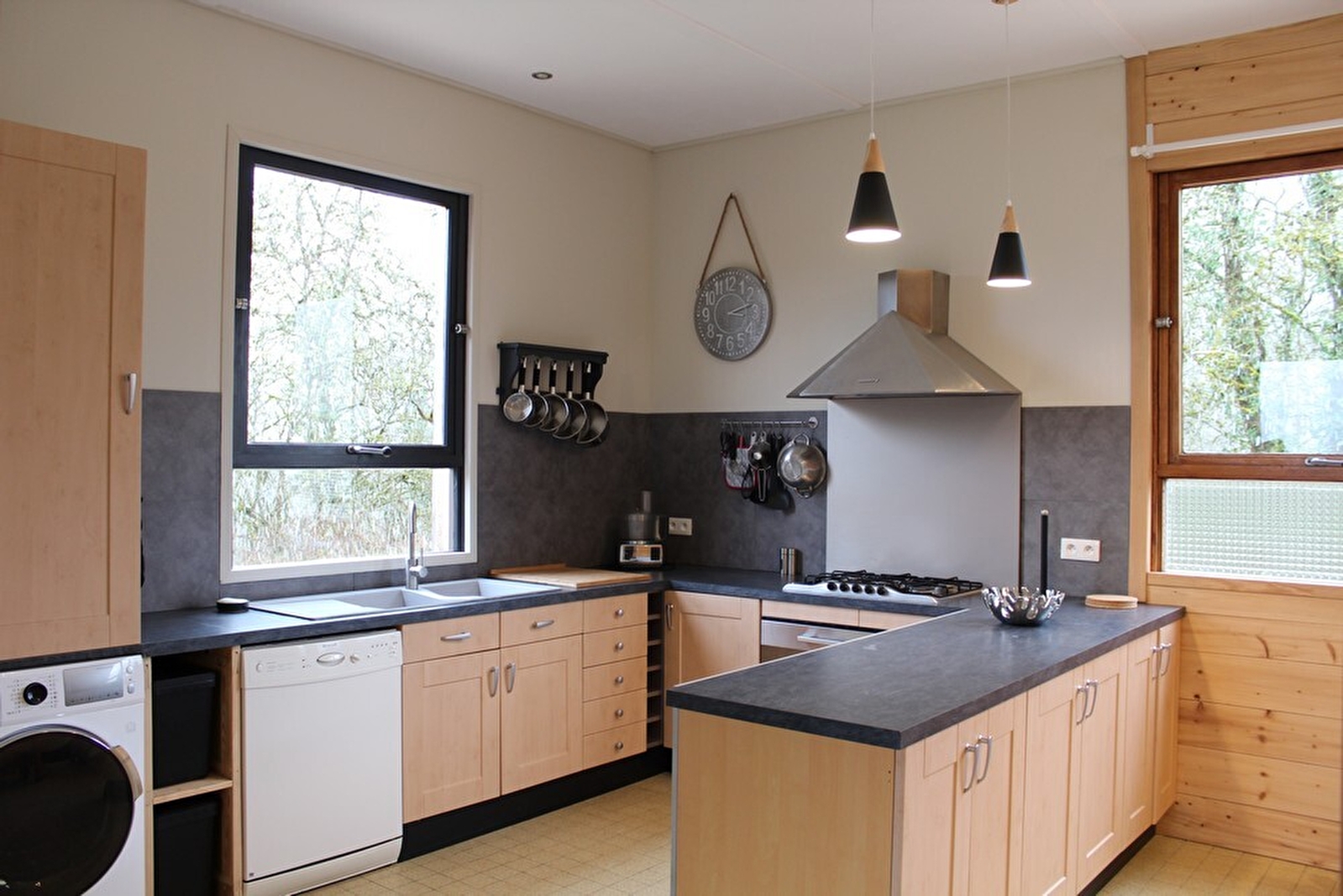 Gelegen op het terrein van het kasteel, midden in de natuur en in een rustige omgeving, kun je genieten van deze volledig gerenoveerde en comfortabel ingerichte gîte. Er is een woonkamer met zithoek en hoekkeuken, 5 slaapkamers die elk plaats bieden aan 3 personen en uitgerust zijn met een toiletruimte (wastafel, spiegel en opbergruimte), 2 douches en 3 aparte toiletten. Een grote activiteitenruimte uitgerust met een scherm en videoprojector stelt je in staat om presentaties te houden of te ontspannen met familie of vrienden. Een ware oase van rust die uitnodigt om nieuwe energie op te doen en te ontspannen. Een must-see!
