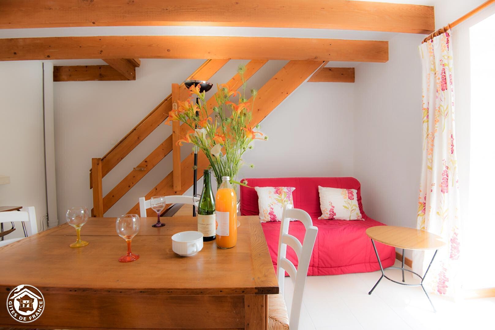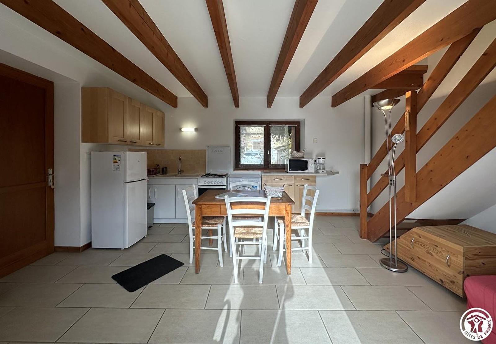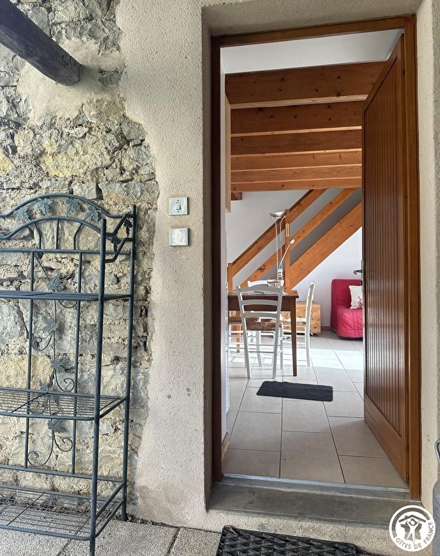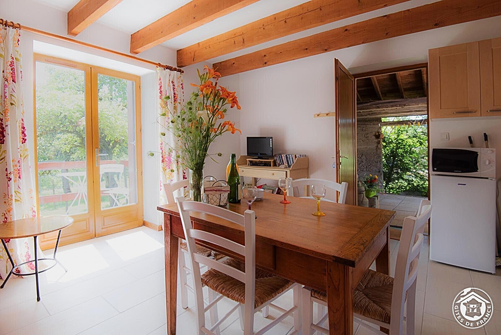 Toegang tot een functionele keuken, open naar de woonkamer (slaapbank voor 2 personen). Boven, een slaapkamer (2 eenpersoonsbedden), lichte doucheruimte, apart toilet. Elektrische verwarming. Grote gîte (capaciteit 8-10 personen) op het terrein. Ideaal voor familie reünies. Te bezoeken: de zijde-industrie van Jujurieux, uitzonderlijk erfgoed van de Ain, Ambronay en zijn festival van barokmuziek. Wandelingen aan de voet van de gîte, sneeuwschoenwandelen in de winter, op 15 km van het plateau van Hauteville.