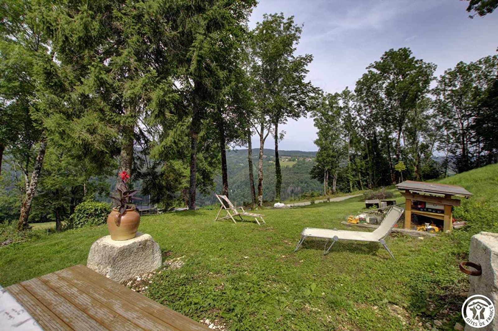 De hoofdingang leidt naar een keuken en woonkamer met alle charme van hout en steen, met een warme en pure inrichting, een woonkamer met pelletkachel zal u verwarmen tijdens de koudste periodes. Een toegang tot het privé terras van de gite en geen inkijk. Een mooie houten en metalen trap leidt naar een grote mezzanine van 50 m² waar de bedden zijn verdeeld: aan de ene kant een bed van 160 cm, aan de andere kant een bed van 90 cm met een ontspanningsruimte en zijn net om jong en oud te verrassen en tenslotte aan de overkant een bed van 140 cm en zijn bed van 90 cm. Drie treden naar beneden, een mooie doucheruimte met geïntegreerde WC. Houtverwarming. Het pluspunt van deze gîte: lakens, handdoeken en nutsvoorzieningen zijn inbegrepen. Tijdens de winterperiode wordt een sneeuwuitrusting voor uw voertuig sterk aanbevolen. Om de wandeling van het wiel en de Marmites te ontdekken. Om te zwemmen kunt u naar de meren van Lalleyriat of het meer van Genin. Voor archeologen in de dop is er Dinoplane - in het spoor van de Dinosauriërs, het Noords skigebied van Giron, het Plateau du Retord.... Of u nu een natuurlijk of cultureel erfgoed wilt ontdekken, de Terre Valserine is een regio rijk aan activiteiten.