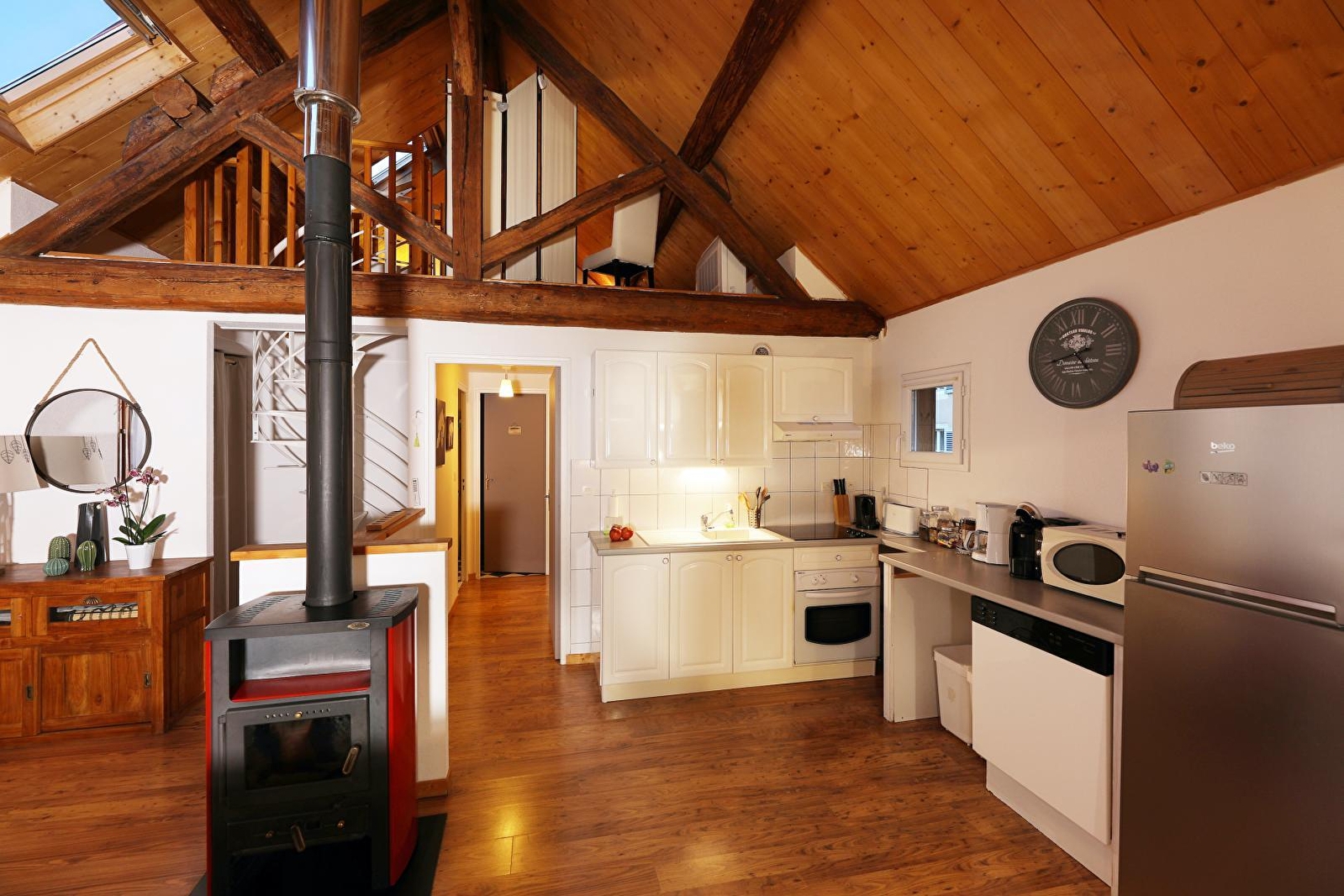Duplex appartement in een gebouw met een andere gîte, in het hart van dit kuuroord met zijn UNESCO Werelderfgoed zoutziederij. Begane grond: hal, 1e verdieping: woonkamer, ingerichte keuken, houtkachel, dvd-speler, hi-fi installatie, badkamer met douche, aparte wc, wasdroger, slaapkamer 1: 2 eenpersoonsbedden, mezzanine: 1 tweepersoonsbed, elektrische verwarming. Binnenplaats, terras, tuinmeubelen, toegang tot het prachtige terrein van het landgoed, gemeenschappelijk overdekt en verwarmd zwembad (open van juni tot september). Huur linnen: € 10/bed, schoonmaakkosten: € 40. Kosten inbegrepen. Allerheiligenweek: 500€.