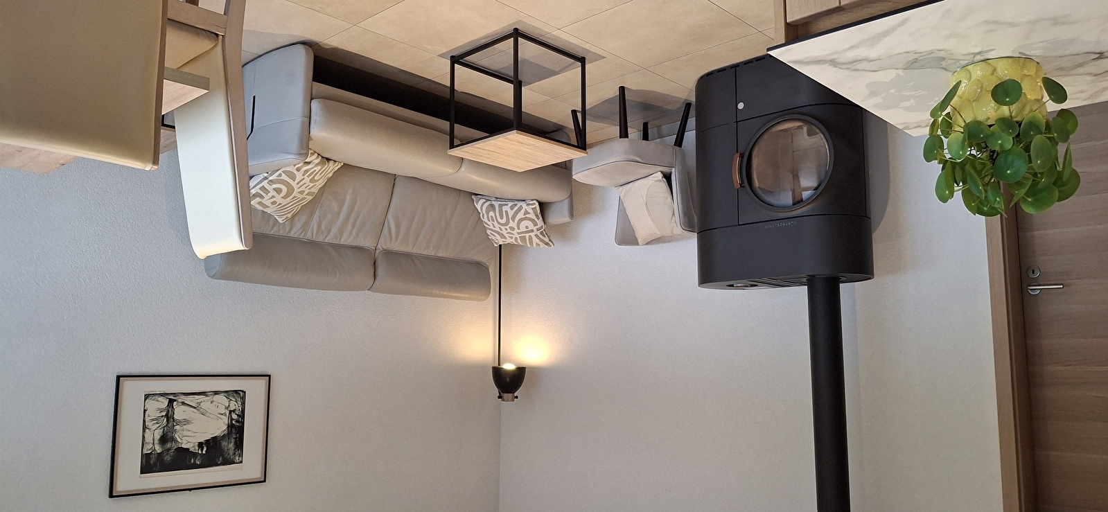 Keuken met eetkamer, woonkamer, verwarmingssysteem (elektrische radiatoren, pelletkachel). Twee slaapkamers (nieuw beddengoed 160x190 en 140x190). In de zitkamer is een bank 90x190 BZ beschikbaar. Badkamer, aparte wc.