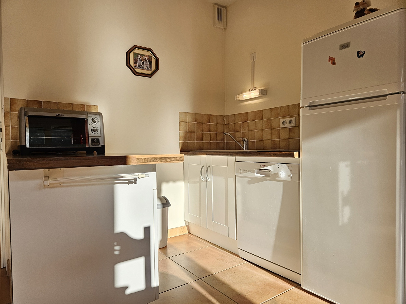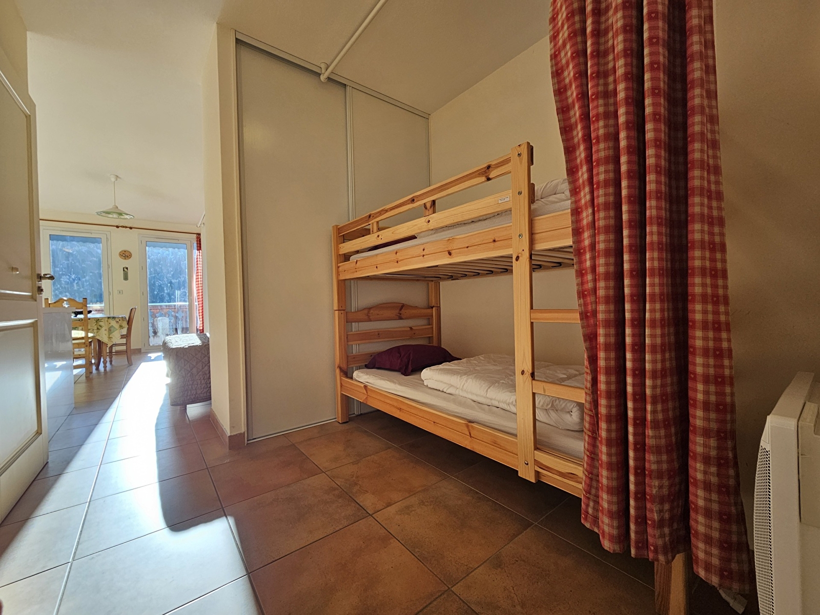Dit appartement van 39 m² op de begane grond ligt in de residentie "L'Abbaye" en bestaat uit een hal met een stapelbed (90 cm), een keuken die uitkomt op de woonkamer met een slaapbank, een slaapgedeelte met een tweepersoonsbed (140 cm) met gordijnen en een badkamer met douche.