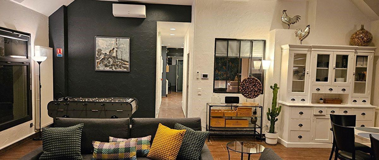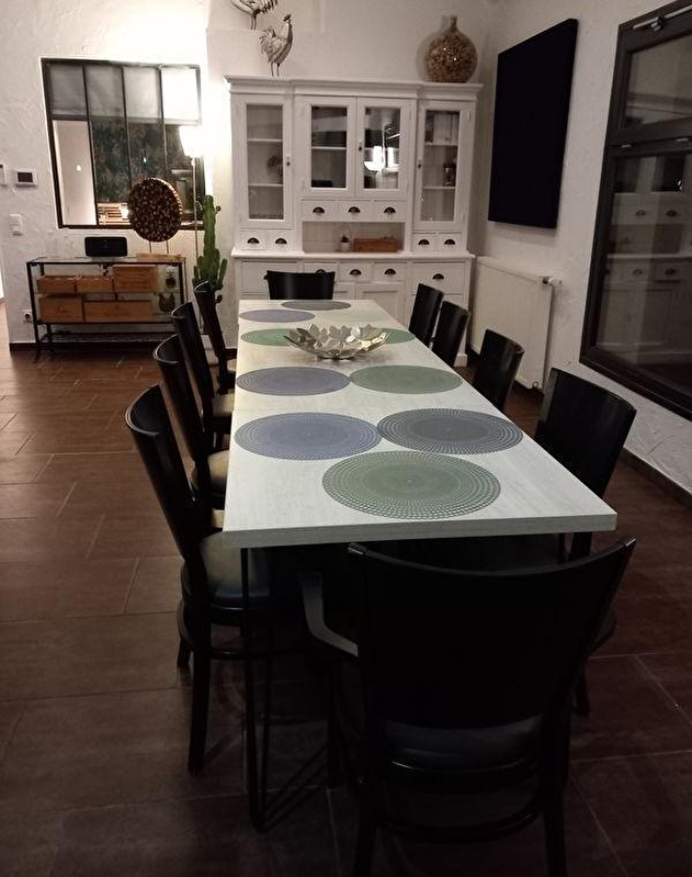 Op de grens tussen de Jura en de Saône et Loire ligt deze gîte in een oude schuur uit 1850. De gîte is volledig gerenoveerd door de eigenaren om u te voorzien van alle moderne comfort en bestaat uit 2 tweepersoonskamers (bed 140*200) op de begane grond met aangesloten tv, een doucheruimte, een apart toilet, een volledig uitgeruste open keuken en een woonkamer van meer dan 50 m2 met een zithoek ingericht met 2 slaapbanken (mogelijkheid voor 4 personen op aanvraag en tegen betaling) en aangesloten tv en een eethoek. Voor ontspannende momenten is er een tafelvoetbaltafel, een bibliotheekhoek en bord- en buitenspellen. De woonkamer is volledig open aan de achterzijde van het gebouw, met directe toegang tot een schaduwrijk terras van 45 m2. De eerste verdieping bestaat uit 2 slaapkamers, elk met 1 tweepersoonsbed (140x190) en een eigen badkamer, open of halfopen ruimte (1 bad of 1 douche) en aangesloten TV. Voor uw comfort zijn de bedden opgemaakt bij aankomst, zijn er handdoeken aanwezig en is de schoonmaak inbegrepen. De parking is privé en kan gebruikt worden voor lange verblijven. We aanvaarden kampeerwagens en hebben ook een beveiligde zone voor fietsen en motoren. De gîte ligt halverwege tussen Lons le Saunier (museum, recreatiepark, spa, casinospelen) en Louhans, dat een van de mooiste markten van Frankrijk heeft. We liggen op 5 minuten van afrit 8 van de A39, 1 uur van Beaune, Dijon en Besançon, 1 uur 15 minuten van Lyon en 1 uur 30 minuten van Genève. De eerste skipistes liggen op 45 minuten afstand en het merengebied op 30 minuten. De gîte ligt op 200 meter van de autovrije "Voie Bressanne" die Lons le Saunier verbindt met Châlon sur Saône.