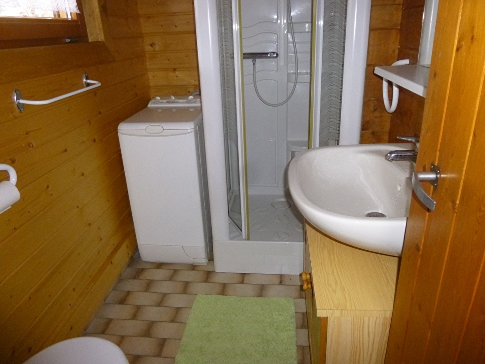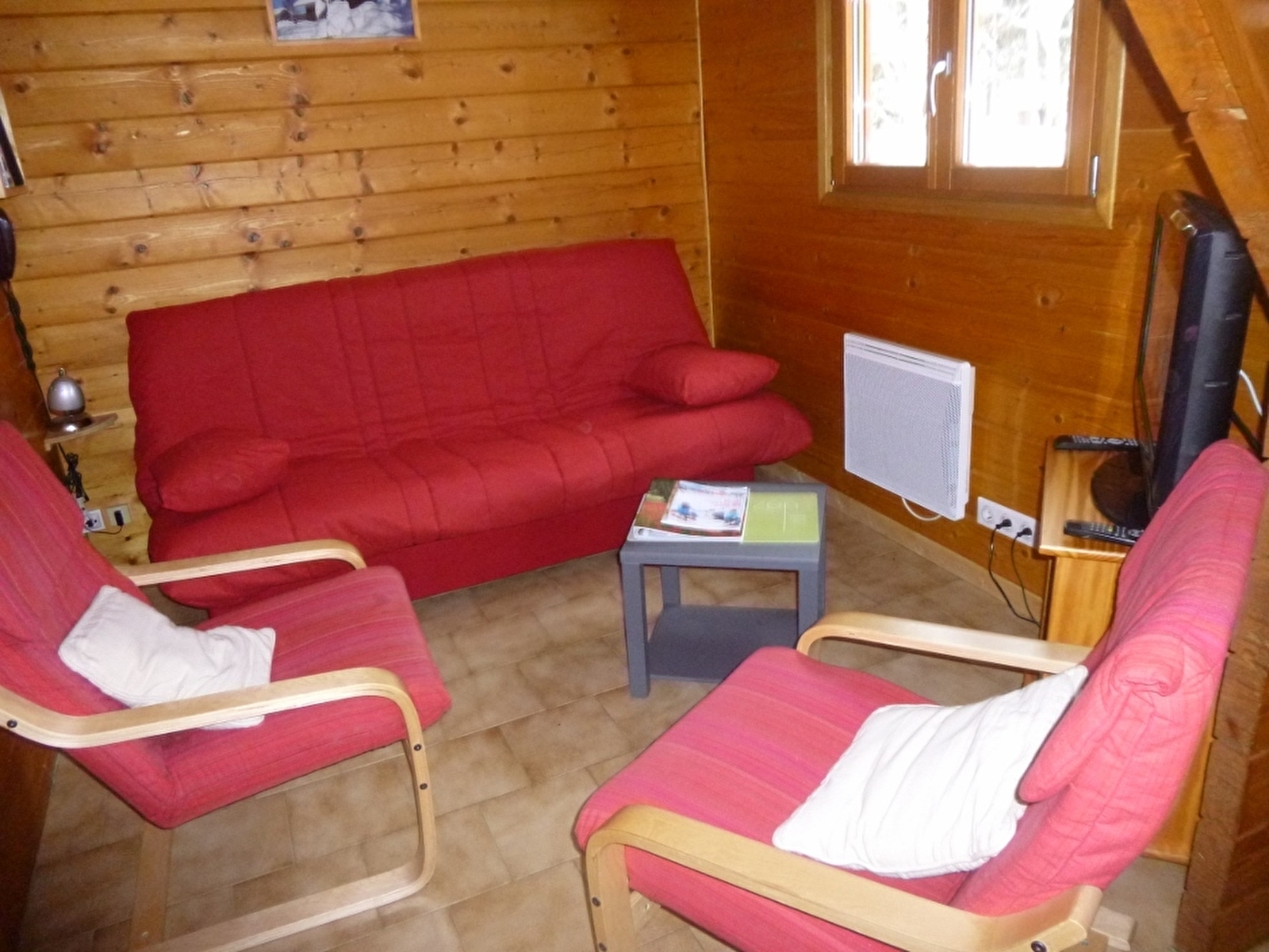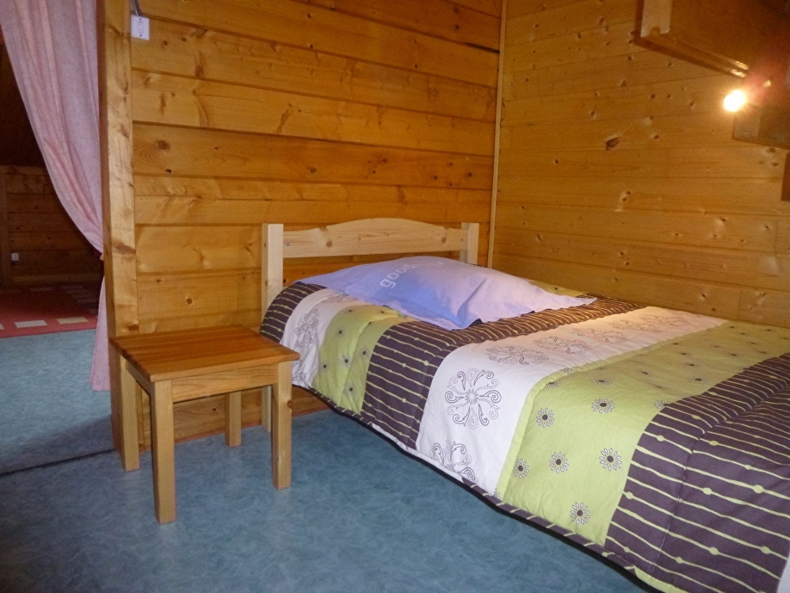 Vrijstaand chalet, met op de begane grond: woonkamer, zitkamer, keukenhoek, doucheruimte met WC, slaapkamer met tweepersoonsbed. Boven: een mezzanine en 2 slaapplaatsen voor 1 persoon. Aangrenzende niet omheinde tuin, binnenplaats, balkon, barbecue, tuinmeubelen. Elektrische verwarming. Alle nutsvoorzieningen inbegrepen. Picknicktafel, privé parkeerplaats op het terrein.