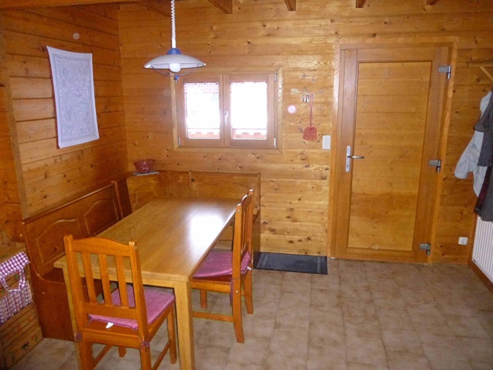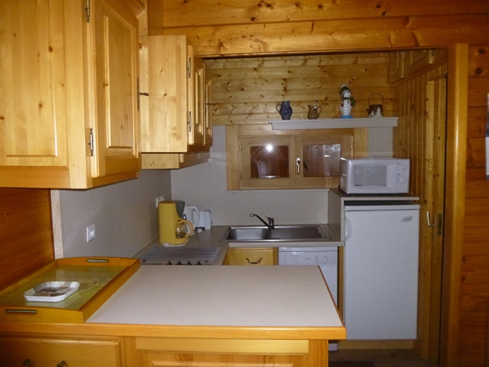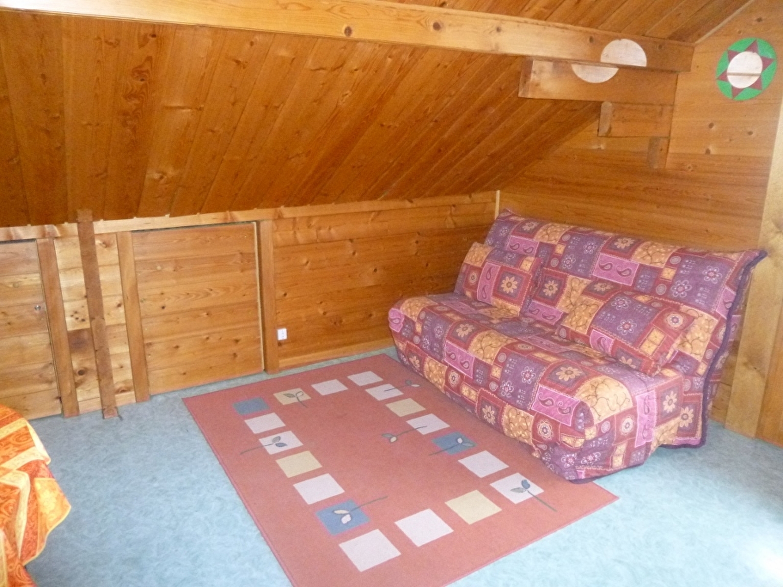 Vrijstaand chalet, met op de begane grond: woonkamer, zitkamer, keukenhoek, doucheruimte met WC, slaapkamer met tweepersoonsbed. Boven: een mezzanine en 2 slaapplaatsen voor 1 persoon. Aangrenzende niet omheinde tuin, binnenplaats, balkon, barbecue, tuinmeubelen. Elektrische verwarming. Alle nutsvoorzieningen inbegrepen. Picknicktafel, privé parkeerplaats op het terrein.
