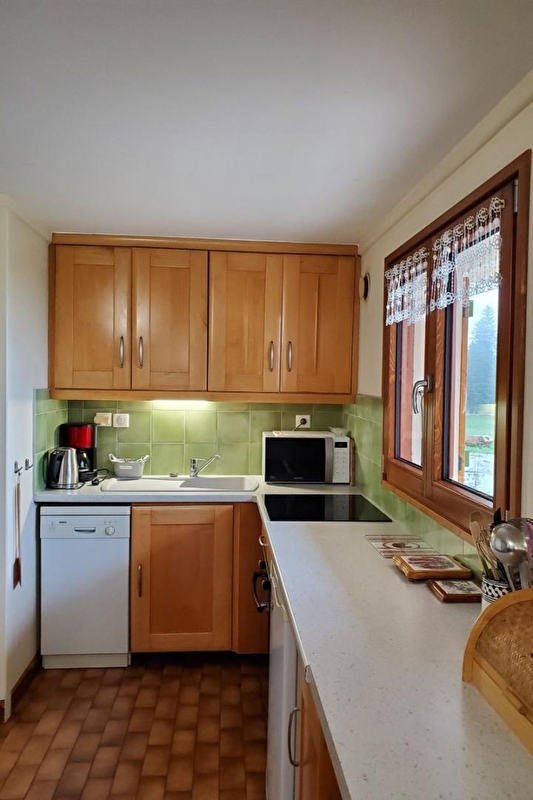 Alles is ontworpen om u een aangenaam verblijf te bieden, comfortabel geïnstalleerd in een grote en lumineuze woonkamer met een TV/DVD lounge en een volledig uitgeruste kitchenette, met een inductietafel en een elektrische oven. U kunt ook genieten van een raclette met uw familie of vrienden (toestellen beschikbaar).