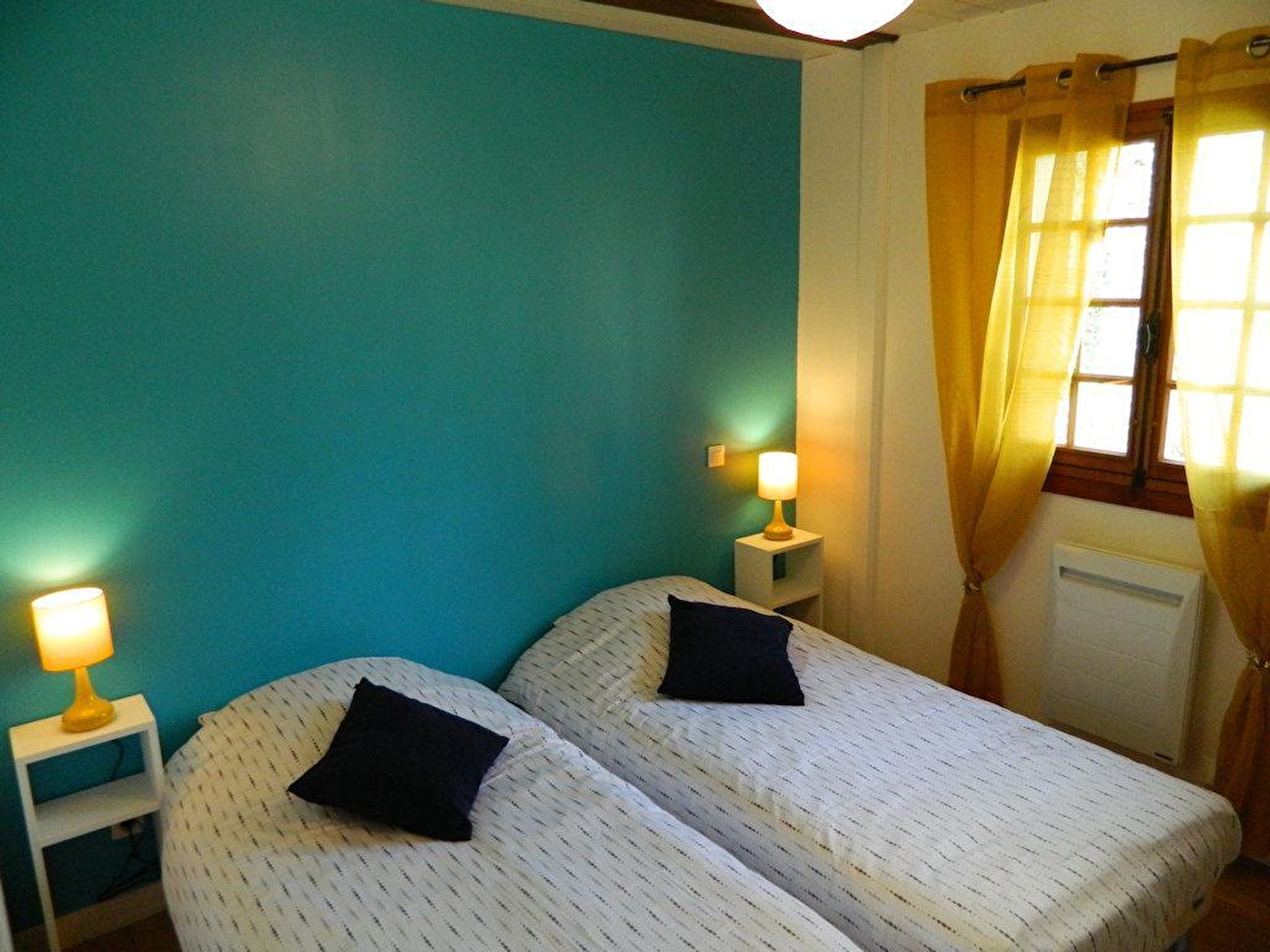 - een slaapkamer met een tweepersoonsbed en een eenpersoonsbed,