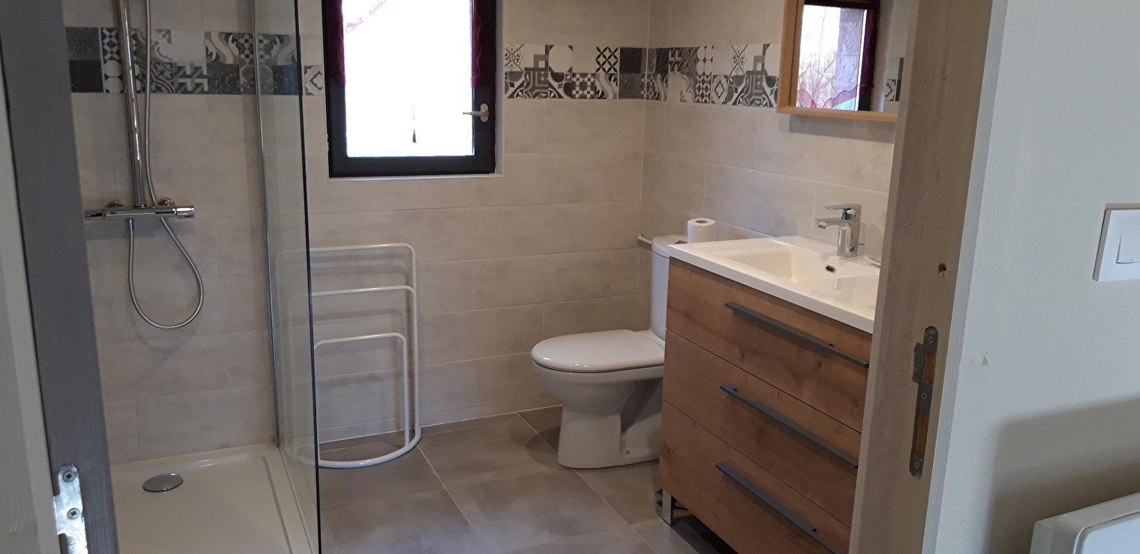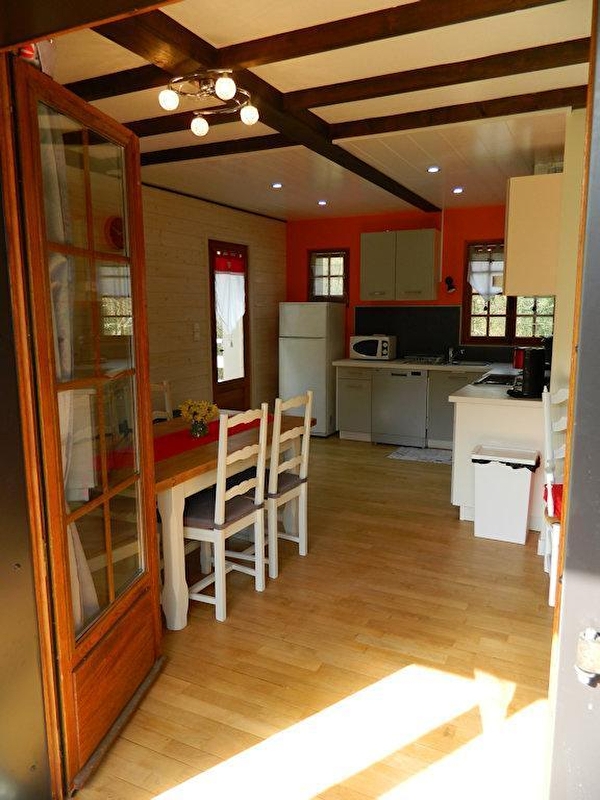 Dit comfortabele chalet van 75 m², volledig gerenoveerd in 2020, biedt een groot terras van 20 m² met uitzicht op het beboste park.