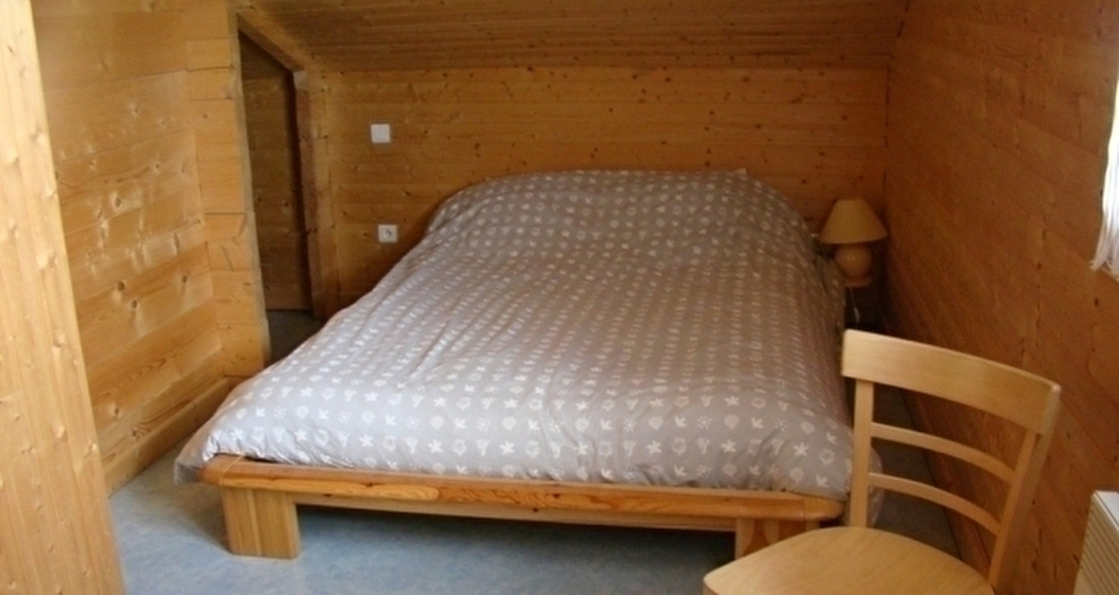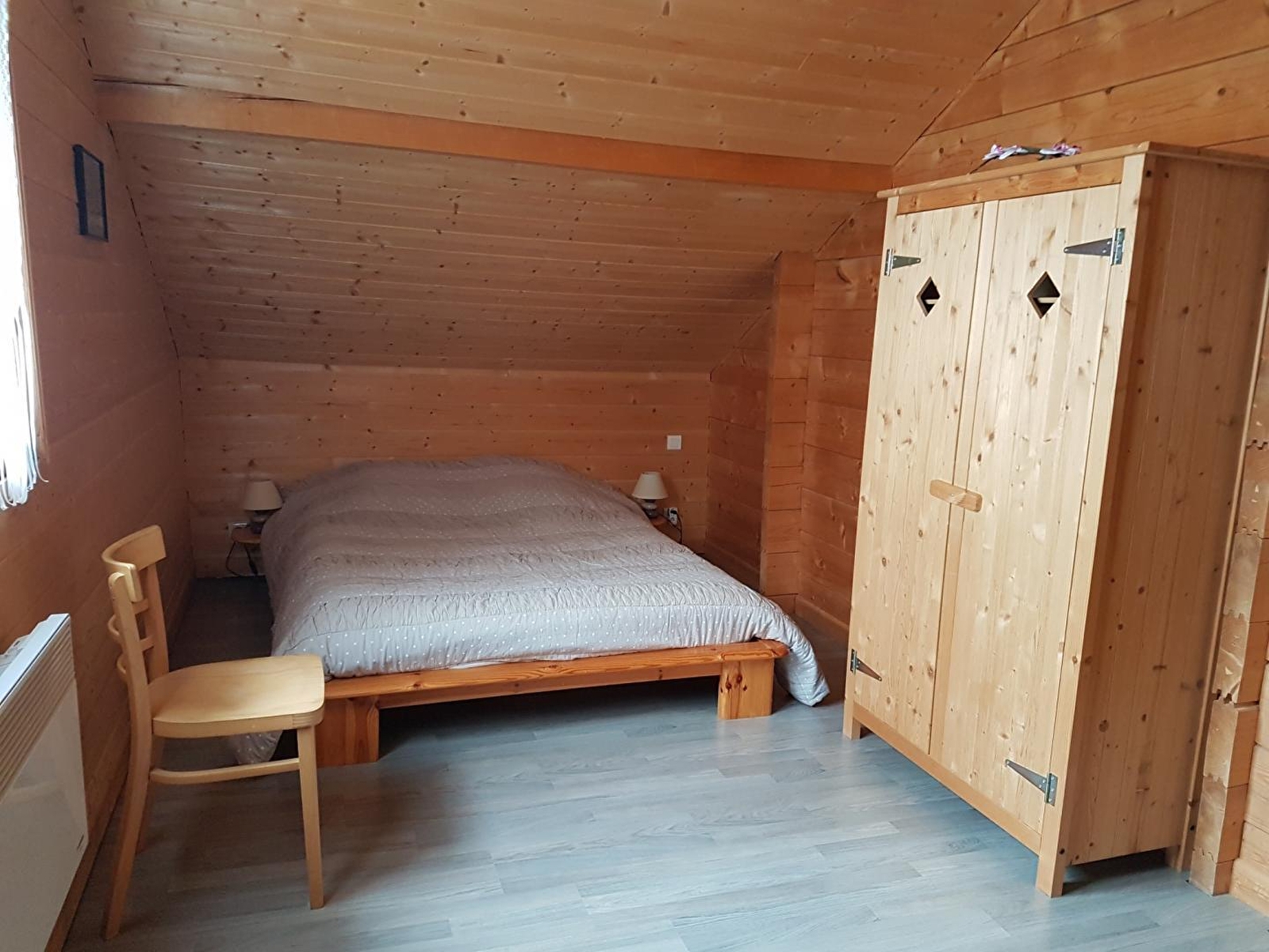 Chalet indépendant. Au RDC: cuisine-séjour-salon, poêle à bois, salle d'eau. A l'étage: ch1: 1 lit 2 pl, 1 lit 1 pl, ch2: 1 lit 2 pl. Cour et jardin attenant non clos, salon de jardin, barbecue. Chauffage électrique et bois (fourni gratuitement). Toutes charges comprises. Accrobranche à 15 km. Confort: congélateur, antenne parabolique,téléphone. A disposition: service à raclette, chaise bébé, jeux. En option: draps: 20€ les 3 paires. Animaux admis hors saison moyennant caution supplémentaire. Forfait ménage: 35€