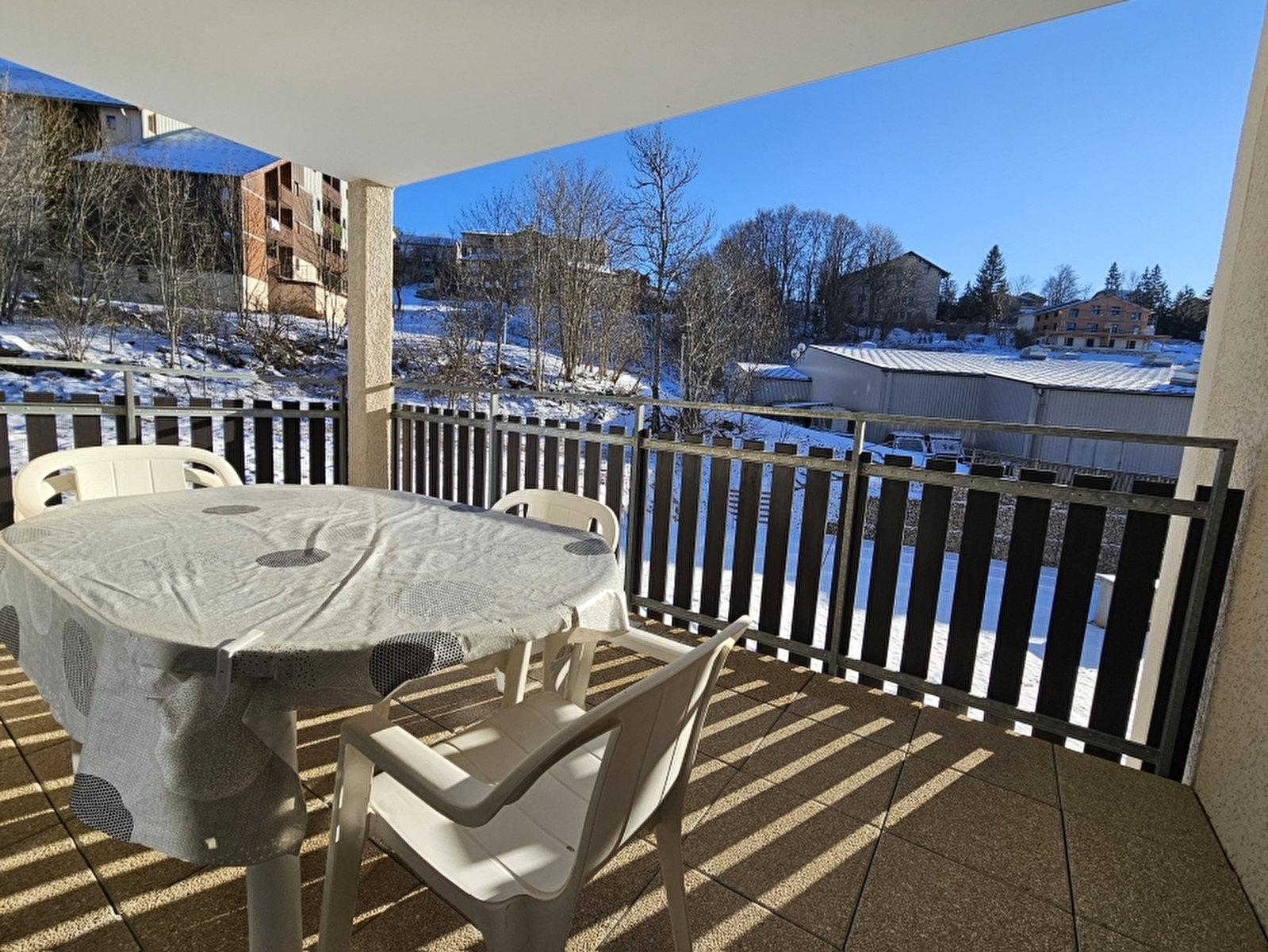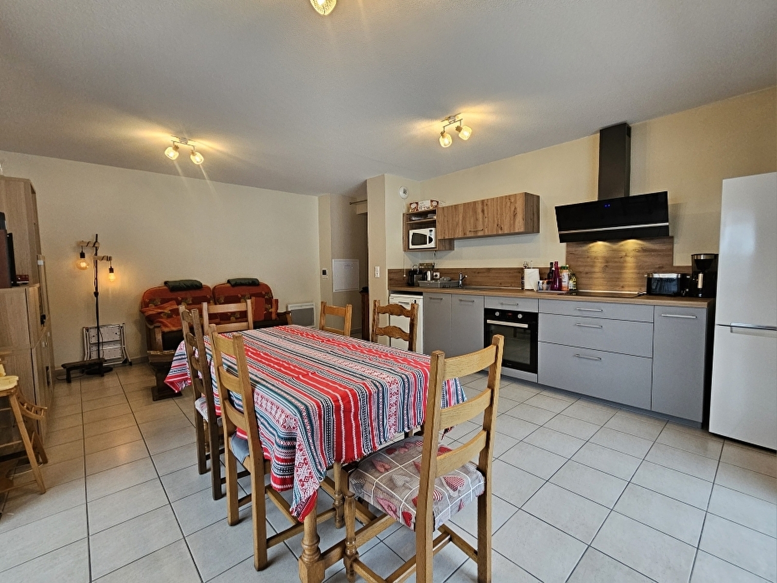 Dit appartement van 60 m² op de 1e verdieping ligt in de residentie "Le Clos des Rousses" en bestaat uit een hal met stapelbedden van 90 cm en een woonkamer met keuken/eethoek en bank. Twee aparte slaapkamers met bedden van 140 cm. Aparte doucheruimte en WC. Toegang van buitenaf naar een balkon maakt het appartement compleet. Ondergrondse privéparkeerplaats. Uitzicht op de achterkant van een supermarkt.