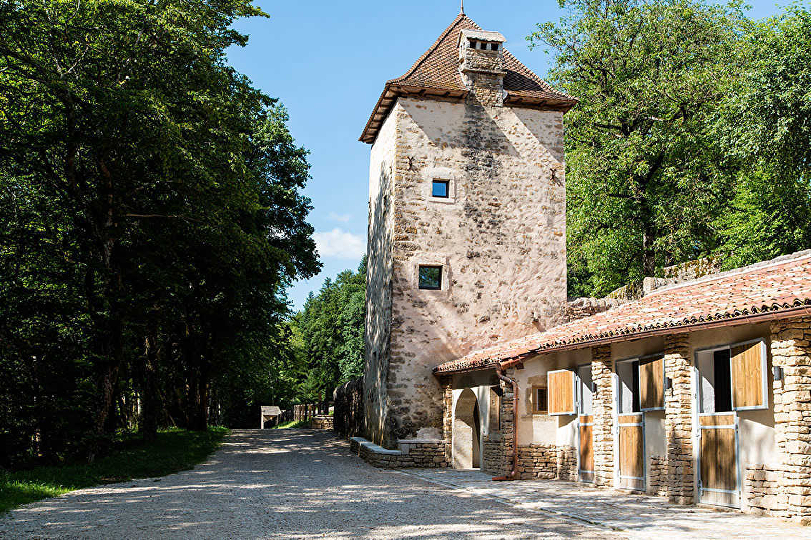 Le Colombier, een 15e-eeuwse duiventil omgebouwd tot accommodatie op 3 verdiepingen, ligt net onder het kasteel, tussen de tennisbaan en de stallen. Deze kleine, ongewone gite van steen, hout en natuurlijke kalk is erg warm en comfortabel. Er is een volledig uitgeruste rustieke keuken op de begane grond, een kleine woonkamer met houtkachel op de 1e verdieping en toegang tot een hoekterras, en een tweepersoonsslaapkamer met douche en wc op de 2e verdieping. Het zwembad van het Domaine staat tot je beschikking (in het seizoen), gedeeld met de bewoners van de grote gîte. Je zult het geweldig vinden!