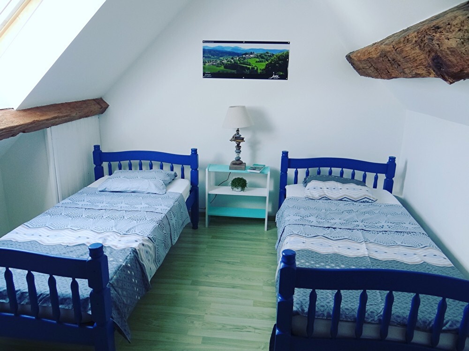 We hebben 3 gîtes die op de monumentenlijst staan en de gelijkvloerse gîte L'étable van 65 m2 bestaat uit twee slaapkamers: een met een tweepersoonsbed (160x190 cm) plus een eenpersoonsbed (90x190 cm) en de tweede slaapkamer met 2 eenpersoonsbedden (90x190 cm), een volledig uitgeruste keuken, een woonkamer met een tweepersoons slaapbank die uitkomt op de keuken, een doucheruimte met toilet en een terras. Privé parkeerplaats voor de gîte of op onze binnenplaats.