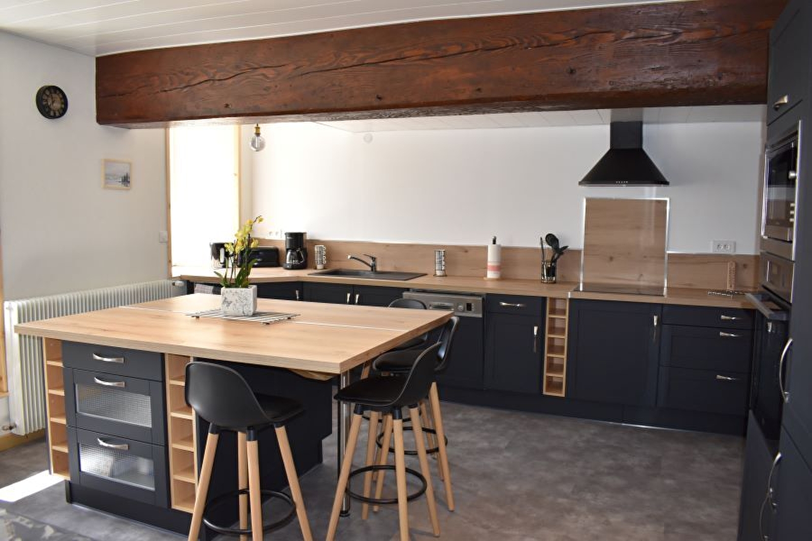 Gelegen aan de rand van de weg die leidt naar Champagnole en Pontarlier op een hoogte van 836 meter, in een groot Comtoise huis grenzend aan het huis van de eigenaren, is deze ruime gîte (170 m²) volledig gerenoveerd om je maximaal comfort te bieden. De begane grond bestaat uit een volledig ingerichte keuken, een woonkamer met tv en open haard, een bijkeuken, een apart toilet en een master suite met 1 tweepersoonsbed en een eigen doucheruimte met apart toilet. Boven: een slaapkamer met een tweepersoonsbed, een slaapkamer met 4 eenpersoonsbedden, een doucheruimte en een apart toilet. Voor uw gemak zijn de bedden opgemaakt bij aankomst. Buiten: grote tuin van 600 m² met tuinmeubelen, ligstoelen en barbecue. Afgesloten garage, tafelvoetbal, petanque. Aangezien deze gîte op een boerderij ligt, is het mogelijk om op afspraak de boerderij te bezoeken. Ideaal gelegen om te wandelen (bos van Joux met dennen en sparren), skiën, fietsen, zwemmen en vissen. Talrijke meren, watervallen, uitzichtpunten en erfgoederen in de buurt: Source Bleue, Cascades du Hérisson, Gorges de la Langouette, de middeleeuwse stad Nozeroy, de Jura wijngaarden van Baume les Messieurs en Chateau-Chalon. Je bent ook in minder dan een uur in Zwitserland. En vergeet niet de tijd te nemen om onze streekproducten te proeven: Comté, Morbier, Mont d'Or, Morteau worst, Pontarlier, Absint... Opmerking: kleine huisdieren toegelaten op aanvraag bij de eigenaars en een houtmand aangeboden per verblijf. Mogelijkheid om de gîte buiten het seizoen te huren voor 2, 4 of 6 personen tegen een voorkeurstarief op aanvraag bij de eigenaars. Privéparking op het terrein.