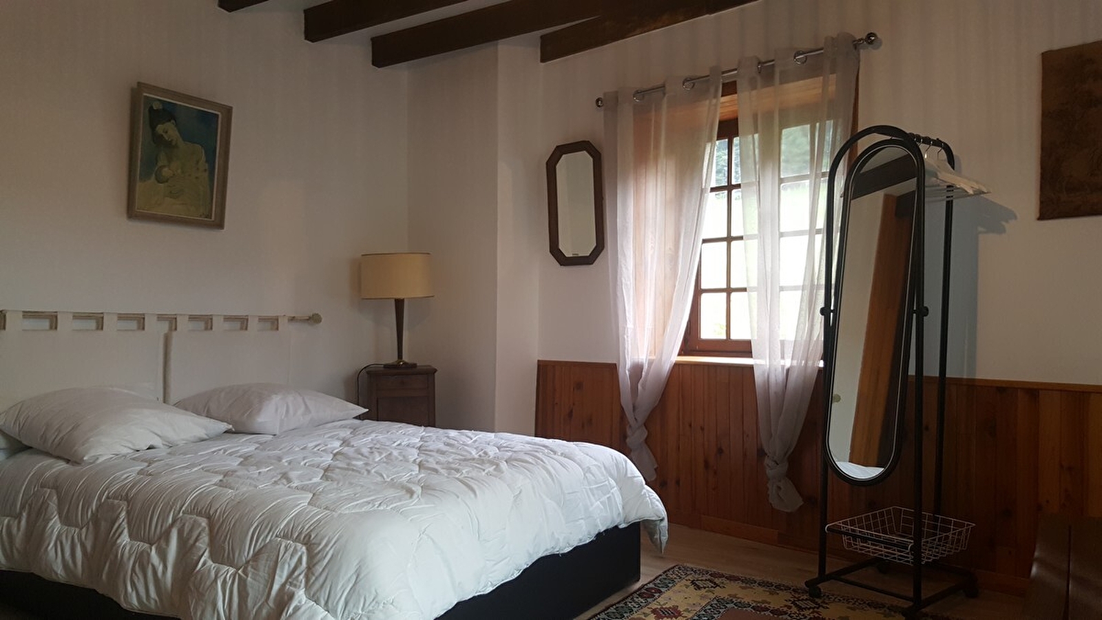 In het hart van de wijngaarden van de Jura, vlakbij de dorpen Baume les Messieurs en Château-Chalon, ontdek deze gîte in een prachtig stenen huis, grenzend aan een andere gîte. Op de begane grond is er een grote woonkamer met eethoek en zitkamer met open haard, evenals een volledig uitgeruste keuken. Toegang via de keuken naar de garage, waar een bijkeuken is met wasmachine, en een apart toilet. Boven, mezzanine lounge met boekenkast, bank en flatscreen tv. Doucheruimte met douchecabine en wc, en een grote slaapkamer met een bed van 140 cm, een bed van 130 cm en een bed van 120 cm. Buiten, aangrenzend omheind terrein aan de rivier, uitgerust met tuinmeubels en barbecue. Garage voor motoren en fietsen beschikbaar. Wacht niet langer om dit stukje paradijs te boeken! De aangrenzende gîte (referentie G2123 op de website van Gîtes de France) is geschikt voor maximaal 9 personen.