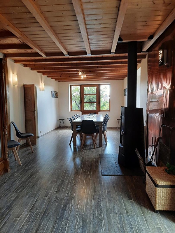 Ideaal gelegen in het hart van de Petite Montagne, dicht bij de stuwdam en het meer van Vouglans, kom en ontdek deze gezinswoning met familie of vrienden, waar het leven goed is. Begane grond: volledig ingerichte keuken, grote eetkamer/salon met bank en flatscreen-tv, doucheruimte met grote douche en apart toilet. Boven, 3 slaapkamers: een met een bed van 160x200 cm, de tweede met 2 bedden van 90x200 die kunnen worden opgemaakt tot een tweepersoonsbed van 180 cm en de derde met 4 bedden van 90x200 waarvan twee stapelbedden. Kleedkamer, wasruimte met wasmachine en droger, stofzuiger, strijkbenodigdheden. Badkamer met groot bad en dubbele wastafel. Buiten, binnenplaats, terras met tuinmeubelen, plancha en barbecue, en omheind aangrenzend terrein (1500m² in totaal). Internetverbinding via glasvezel. Wacht niet langer om te boeken! (GPS coördinaten: Breedtegraad: 46.36051841326494 Lengtegraad: 5.612798323592347)