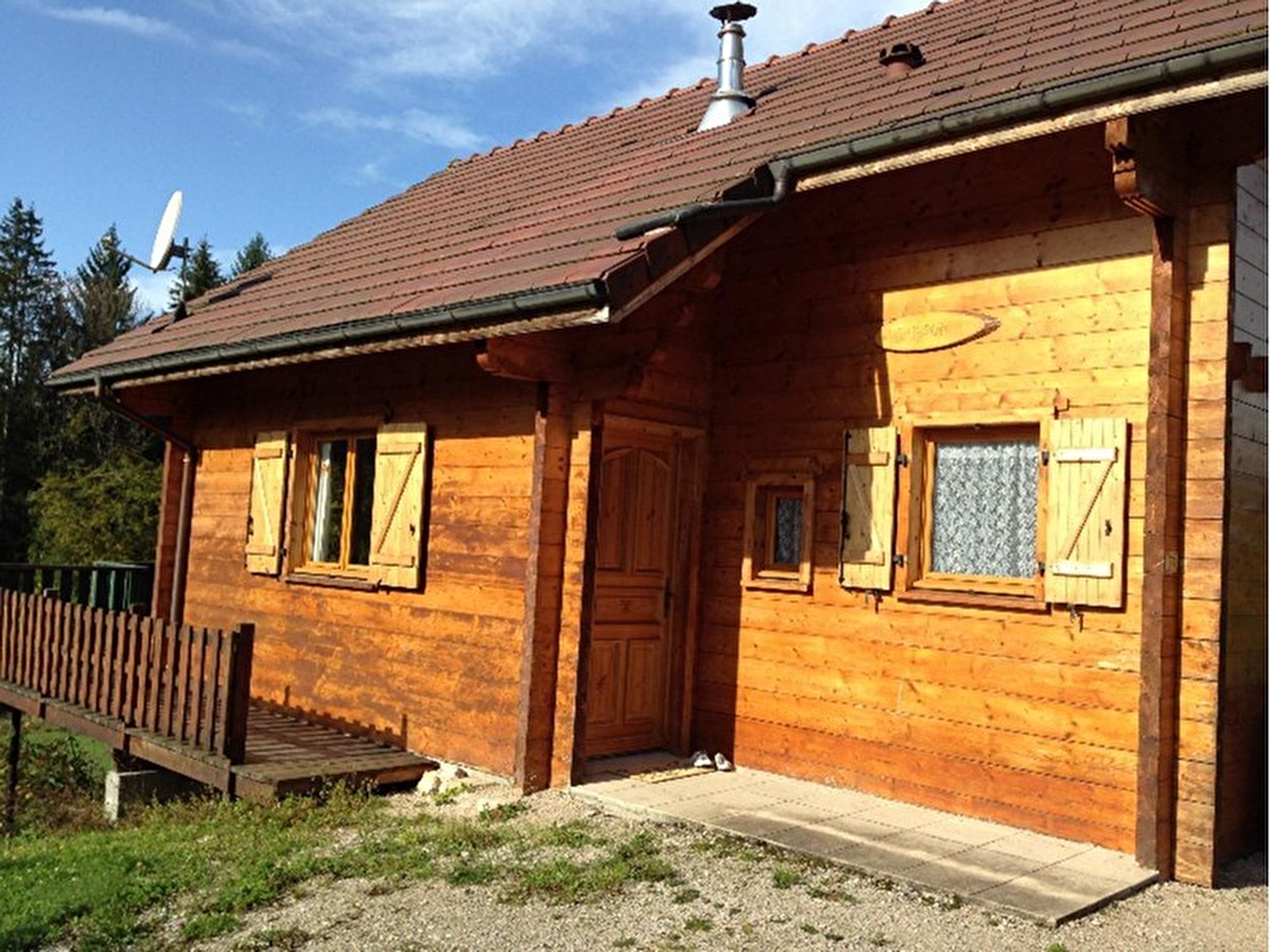 Dans un village situé à toute proximité des plages du domaine de chalain (lac naturel aménagé) avec base de loisirs, tous les commerces de proximité sur place. Dans un ensemble de chalets(4 chalets identiques sur la même parcelle):un chalet(hérisson) :pièce de jour et détente avec coin cuisine aménagé à l'américaine,salon avec canapé,salle d'eau, wc,1 chambre avec 1 lit 2 personnes. A l'étage une mezzanine avec une banquette lit gigogne et 1 chambre avec 2 lits une personne, les draps sont fournis. Micro-ondes,télévision,parking privé, terrasse privative(exposée au sud), local à vélos privé et fermé. Forfait ménage inclus dans le tarif.