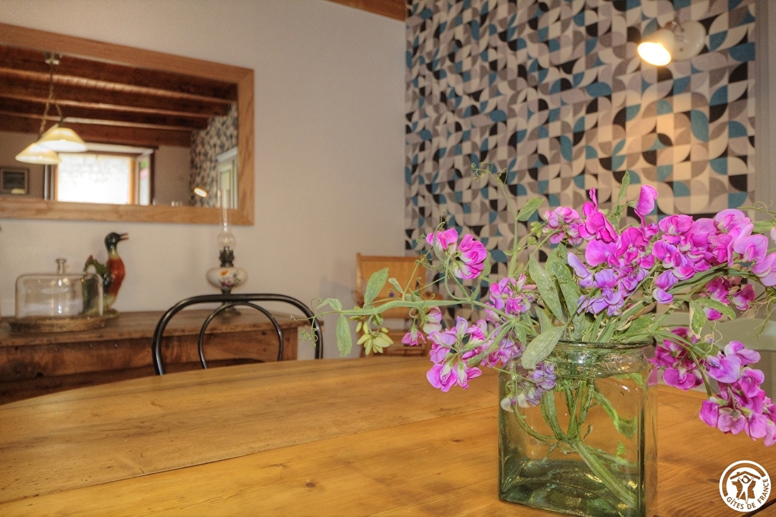 Als je voor het huis geparkeerd hebt, kom je de gîte binnen via de kleine binnenplaats.