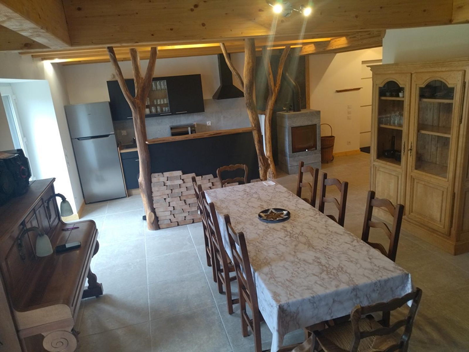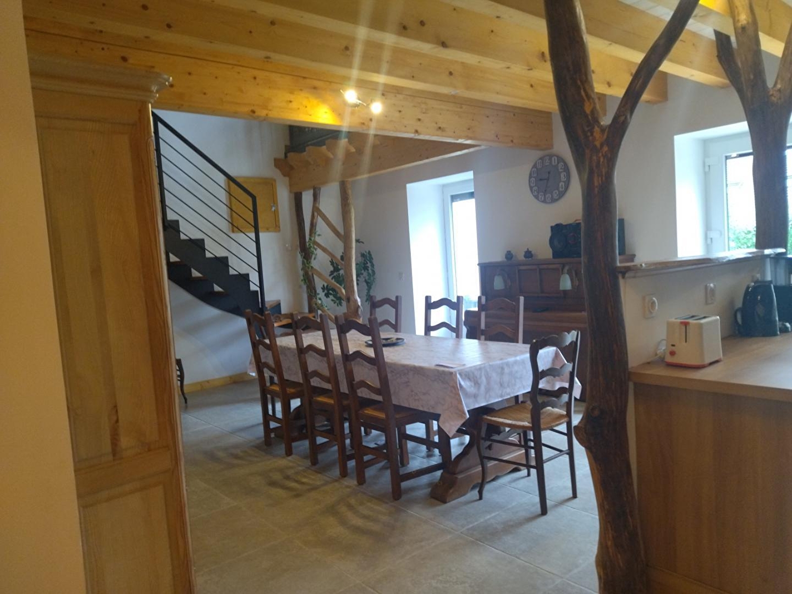 Dit volledig gerenoveerde huis ligt aan de weg naar het meer van Chalain en is ideaal voor je volgende vakantie met familie of vrienden. De begane grond bestaat uit een grote, lichte woonkamer met een volledig uitgeruste keuken, een eethoek en een zithoek met een houtkachel (gratis ter beschikking gesteld), een slaapkamer met een tweepersoonsbed (140x190), een doucheruimte en een apart toilet. Boven is er een mezzanine met TV, 2 slaapkamers met elk 2 eenpersoonsbedden (80*200) en een slaapkamer met 2 stapelbedden (80*190), een doucheruimte met WC. Buiten is er een overdekt terras met tuinmeubelen en barbecue, en een tuin met ligstoelen.