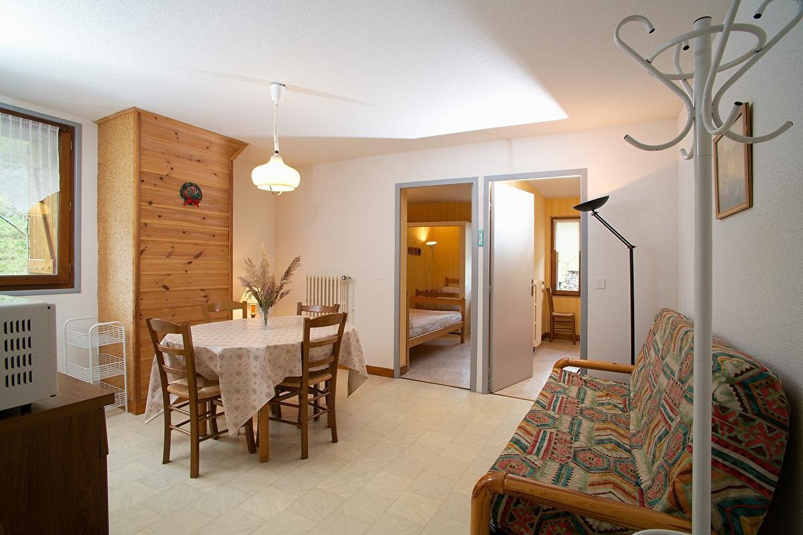 Deze accommodatie, op de 1e verdieping van een huis met andere gîtes, bestaat uit een woonkamer met een ingerichte keuken, een eethoek en een zithoek met een slaapbank, een slaapkamer met een tweepersoonsbed (140x190), een slaapkamer met 2 stapelbedden, een badkamer met douche en een apart toilet. Buiten kunt u genieten van een privétuin met terras voorzien van tuinmeubilair, ligstoelen en een barbecue. Centrale verwarming. Alle kosten inbegrepen. Verboden te roken. Op 5 minuten met de auto van het centrum van het dorp waar u alle voorzieningen vindt: apotheek, restaurants, tabakswinkel, supermarkt, enz. Talrijke activiteiten: langlaufen, skiën, bezoek aan de wijnkelders, commandospel, enz.