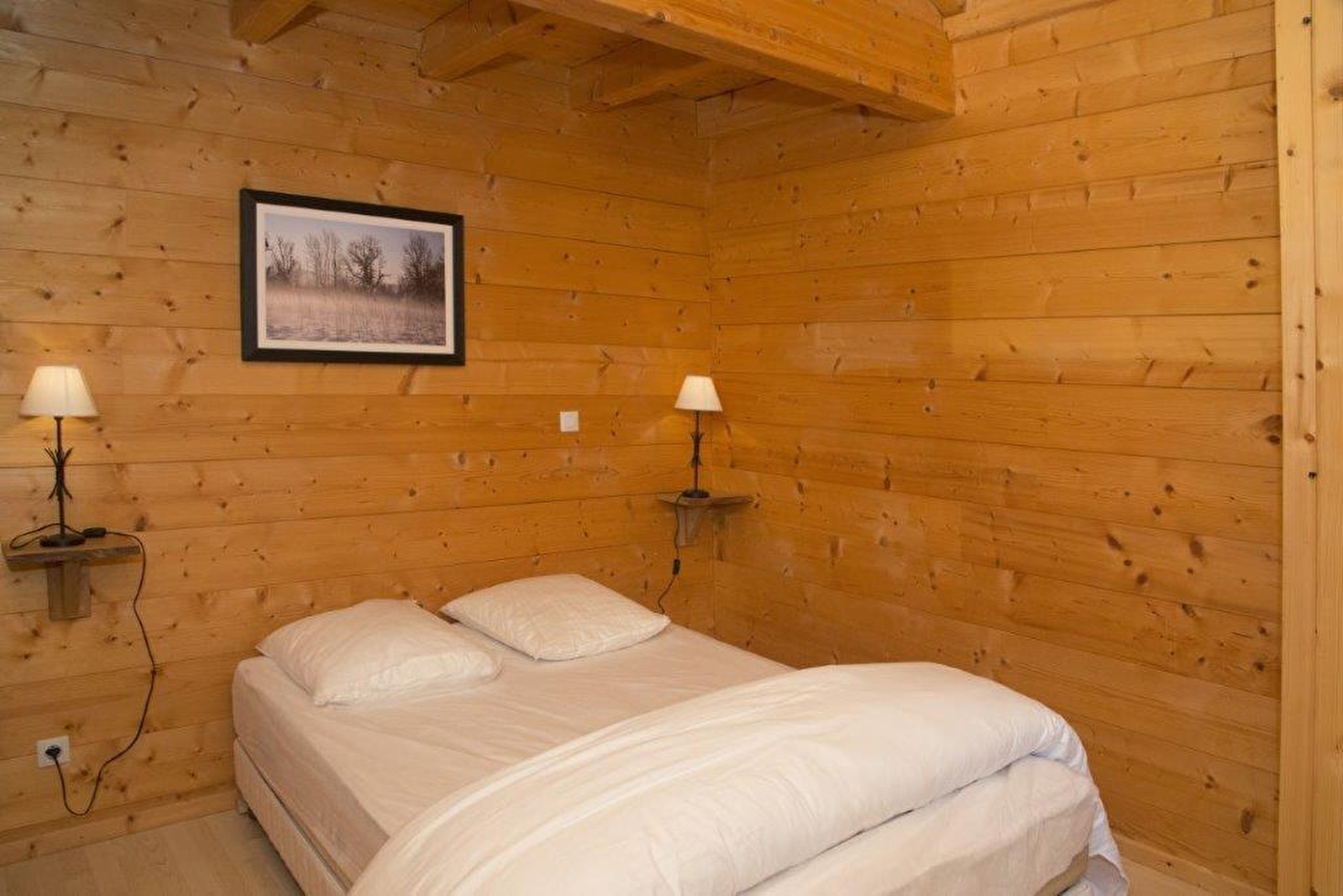 Vrijstaand houten chalet gelegen in het hart van het merengebied. Deze gelijkvloerse gîte bestaat uit een hal, een grote woonkamer met salon, eetkamer en keukenhoek, 3 slaapkamers met 1 tweepersoonsbed (mogelijkheid voor een extra bed in een van de slaapkamers), doucheruimte, apart toilet en garage. Aangrenzende, niet omheinde tuin met terras, tuinmeubilair en barbecue. Je hebt de mogelijkheid om een 2e chalet te huren voor een familiebijeenkomst of een ander doel.