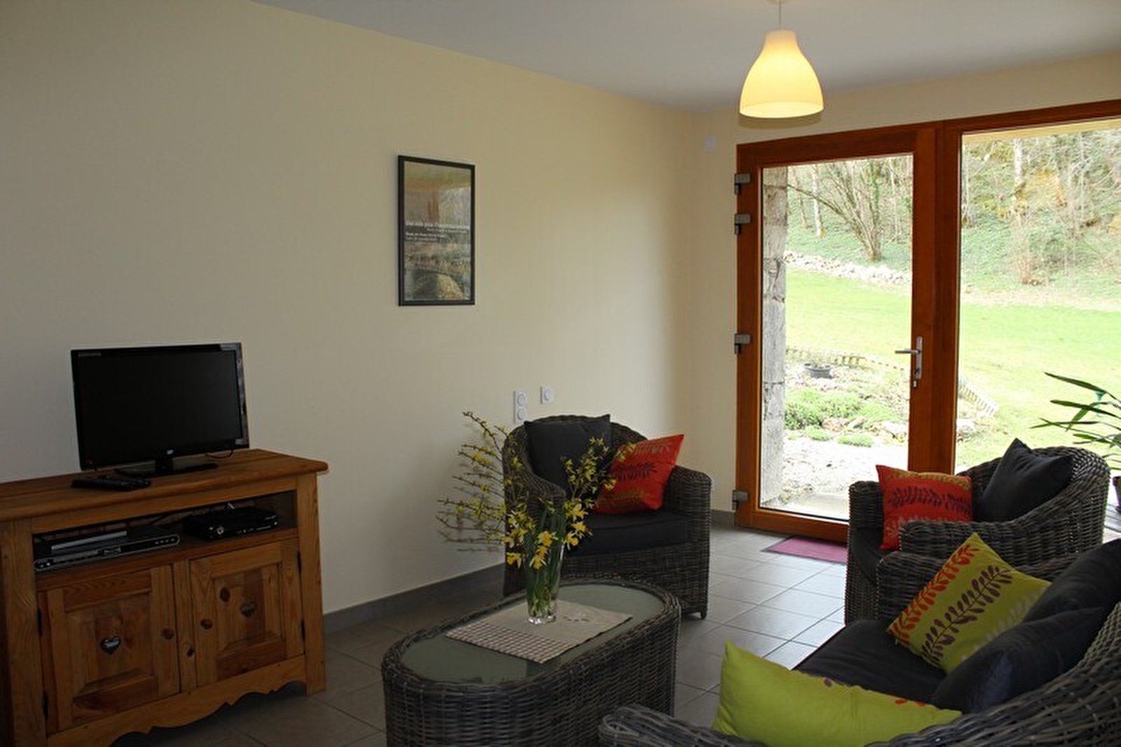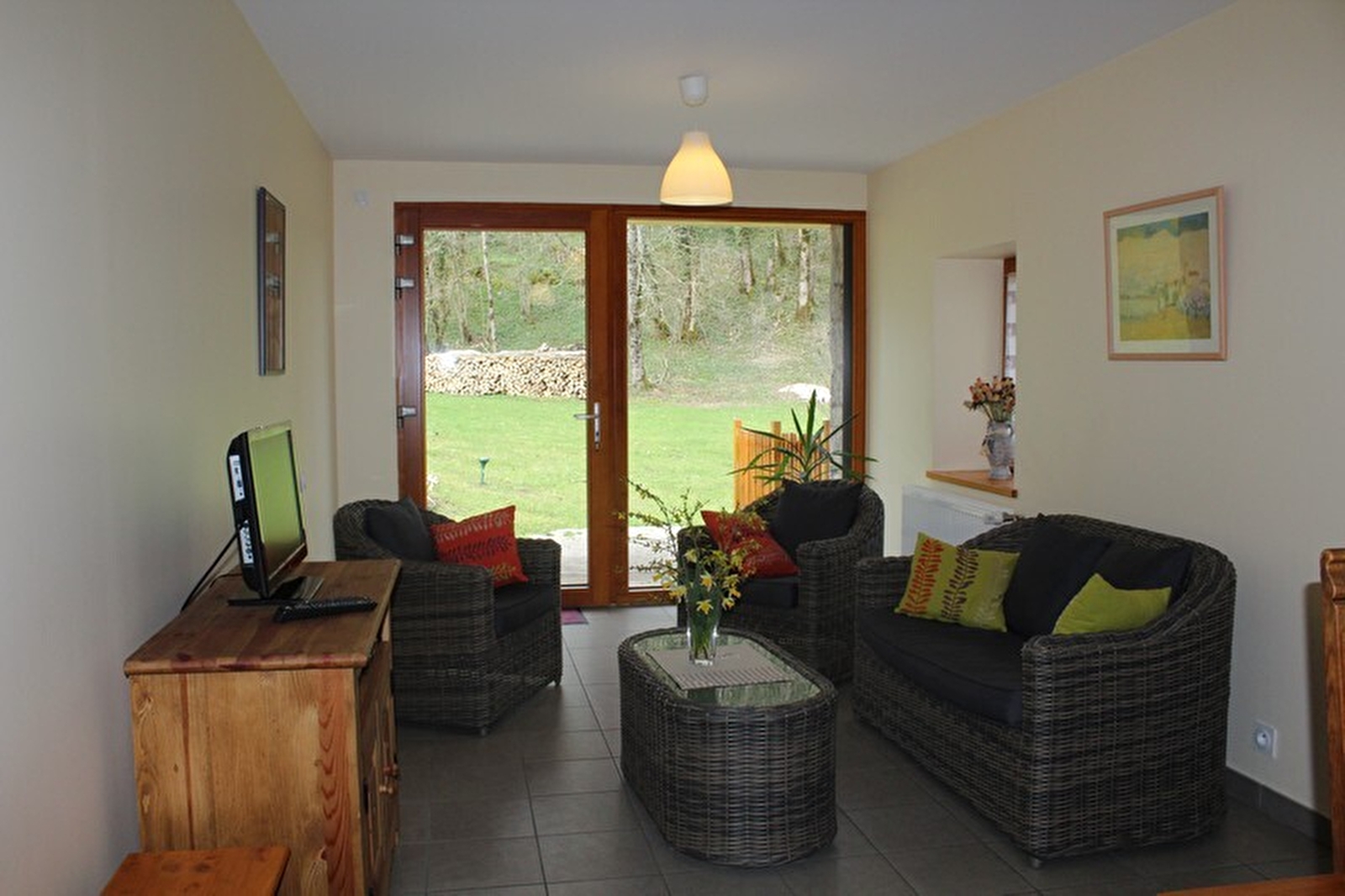 Gîte aangrenzend aan het huis van de eigenaren, vlakbij de 4 meren en de watervallen van Hérisson. Begane grond: hal, wasmachine, apart toilet. Eerste verdieping: grote woonkamer met volledig uitgeruste keuken en 3 ontspanningsruimtes met sofa's (waarvan er een kan worden omgebouwd tot 140cm), flatscreen-tv, TNT, dvd-speler, internettoegang, doucheruimte met inloopdouche en wc. Slaapkamer 1: 1 tweepersoonsbed 160X200cm, slaapkamer 2: 2 eenpersoonsbedden. Terras met tuinmeubelen en barbecue. Groot aangrenzend, niet omheind terrein. Beddengoed aanwezig. Baby uitrusting beschikbaar. Mogelijkheid voor 2 extra personen (neem contact op met de eigenaar).