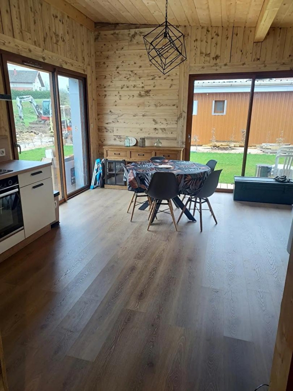 Dit nieuwe huis in houtskeletbouw, dicht bij de regio Pays des Lacs, bestaat uit een woonkamer met een volledig uitgeruste keuken, een zithoek met tv, een slaapkamer met een tweepersoonsbed (160*200), een slaapkamer met 2 eenpersoonsbedden (90*200), een apart toilet en een doucheruimte. Buiten kun je van de zonnige dagen genieten op het terras, uitgerust met tuinmeubels, ligstoelen en barbecue. Let op: op het moment van vertrek moet het chalet schoon en opgeruimd zijn, de vaatwasser geleegd, de vaat opgeborgen, het afval in de buitenbakken (blauwe bak voor recyclebare materialen, grijze bak voor zakken), het glas in de glasbak (bij het kruispunt aan de linkerkant, dan rechtdoor ongeveer 100 m na het 2e kruispunt) en de keuken moet schoon en opgeruimd zijn. Er wordt een borg van 30 euro gevraagd voor het schoonmaken van de keuken. LET OP: de stopcontacten voldoen niet aan de normen voor het opladen van elektrische voertuigen. Het is ten strengste verboden om ze voor dit doel te gebruiken. Risico op kortsluiting of brand. Er is een snellaadstation beschikbaar op 200 m afstand (neem contact met ons op).