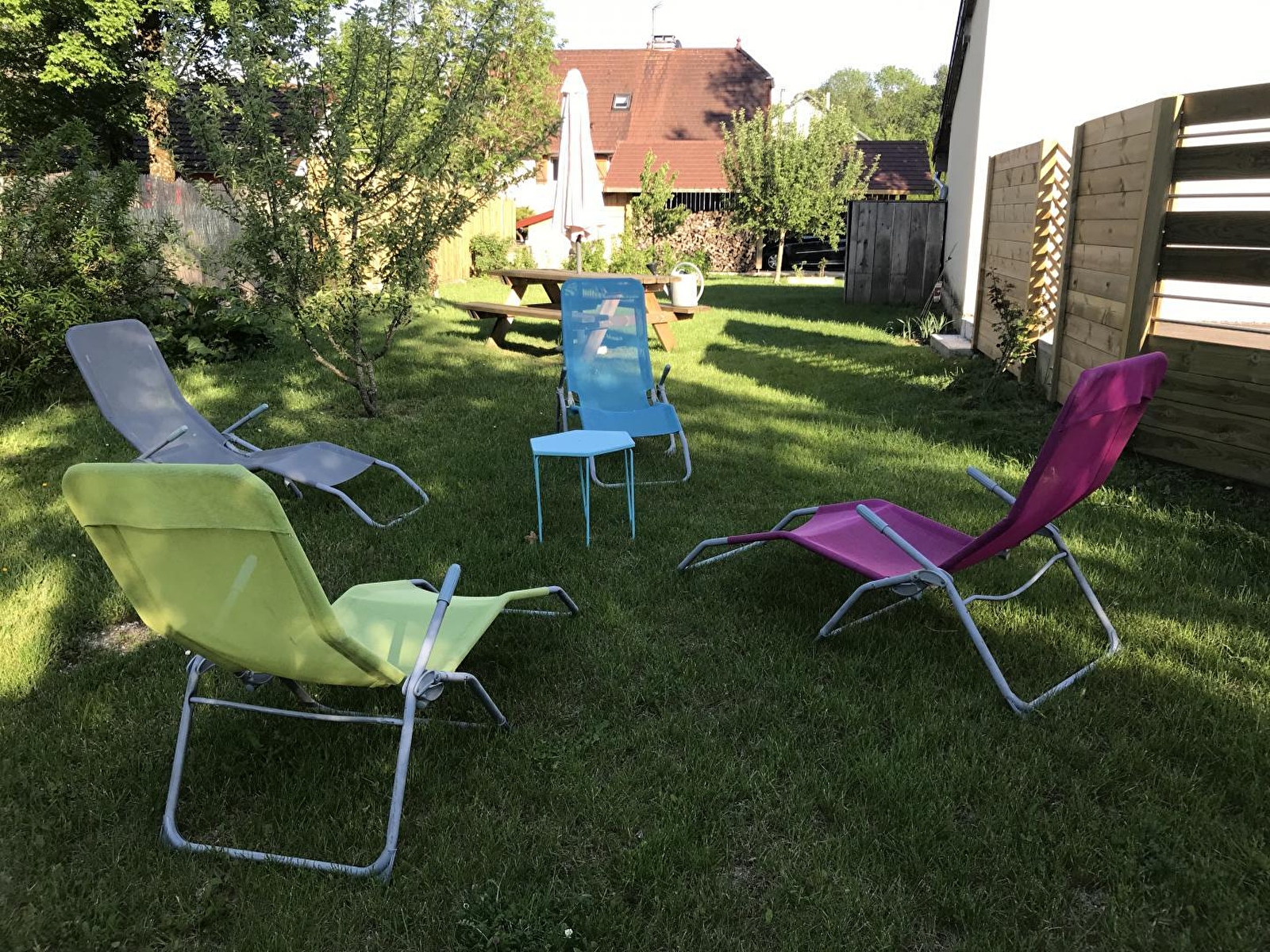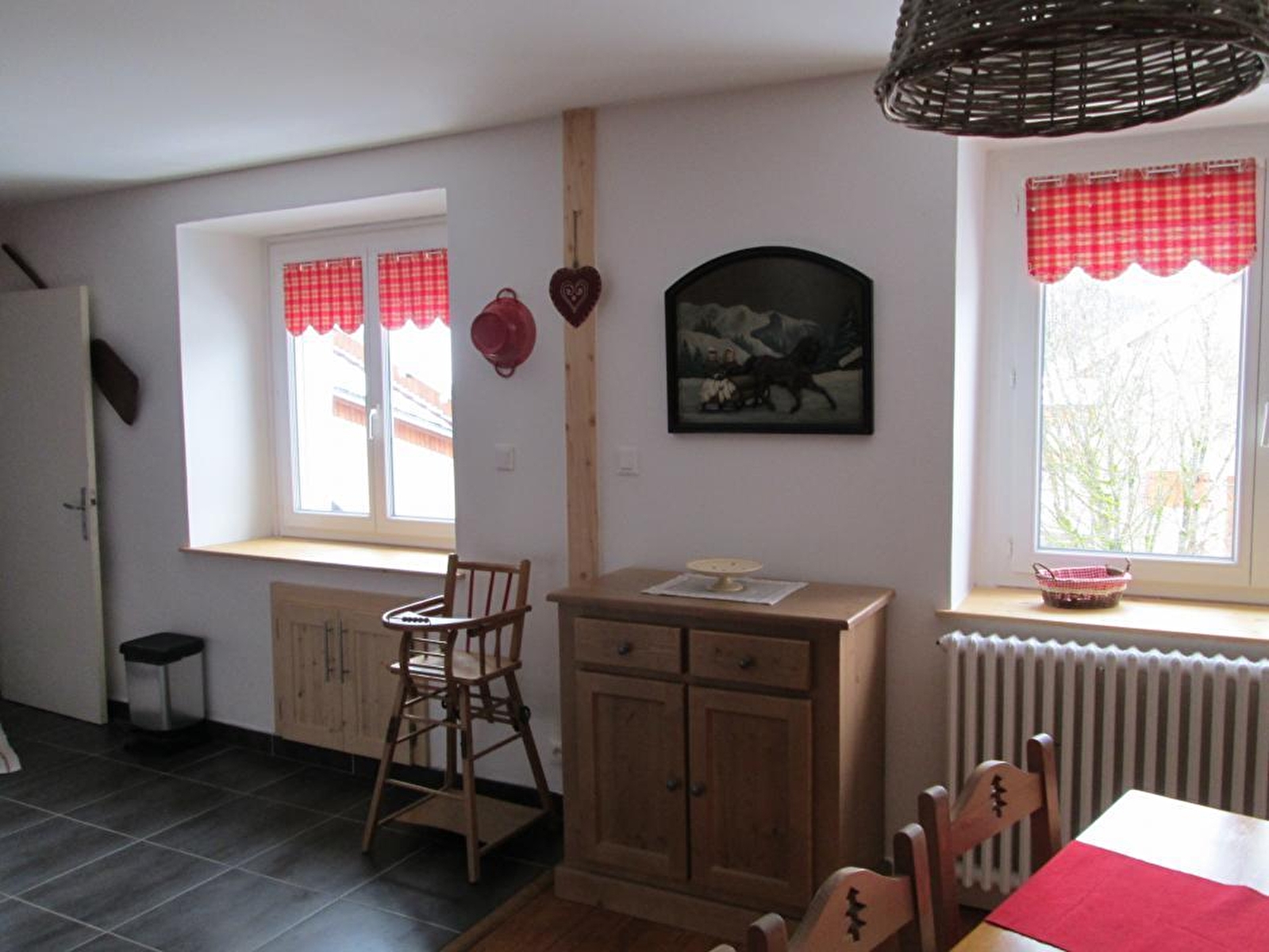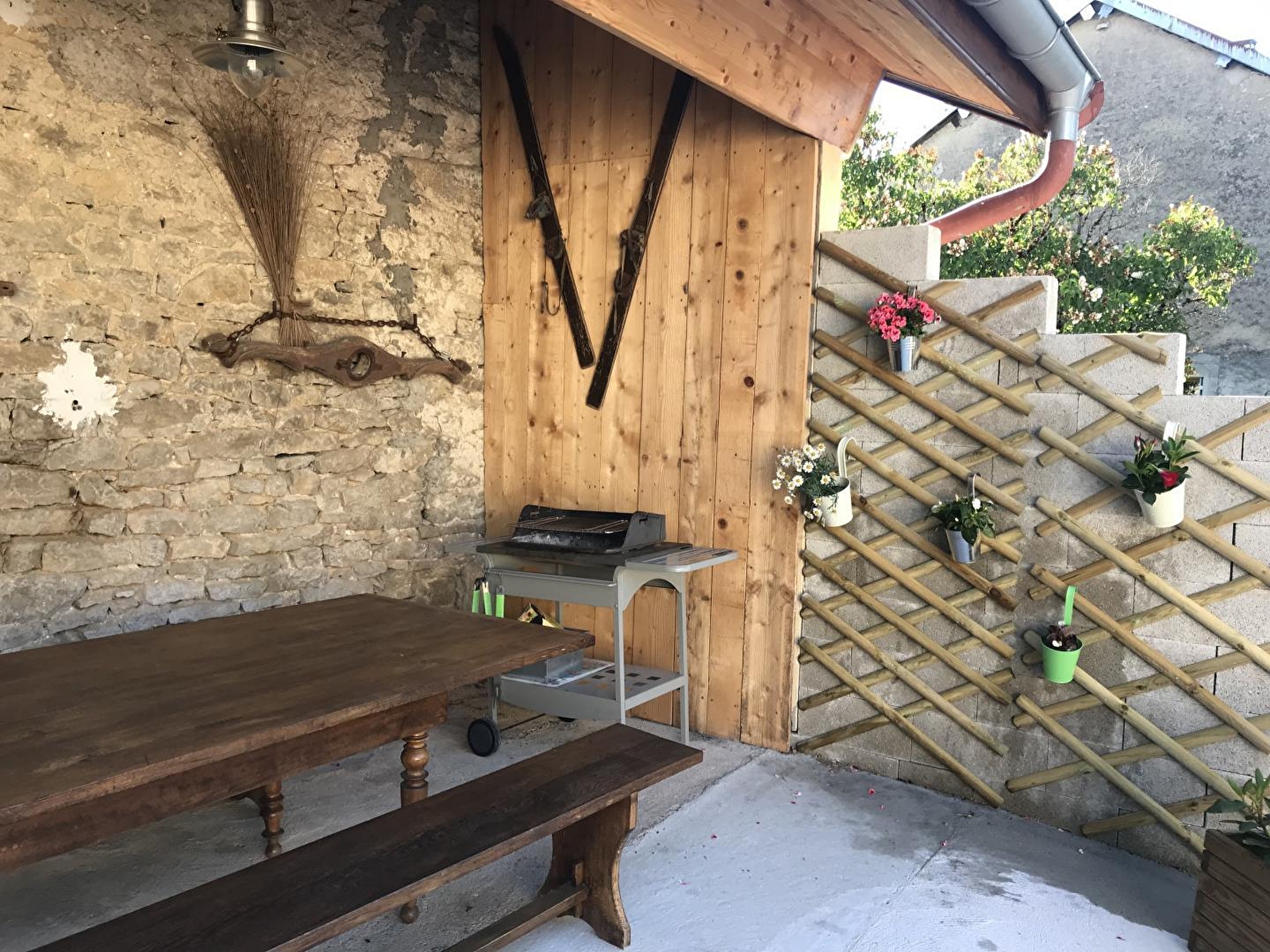 Aangename, smaakvol ingerichte gîte op de 1e verdieping van een huis, op enkele kilometers van de rivier de Ain (1ste categorie). Entree, volledig ingerichte keuken, woonkamer met eethoek en zitkamer (houtkachel), slaapkamer 1: 1 tweepersoonsbed, badkamer met douche, aparte WC, slaapkamer 2: 1 tweepersoonsbed en 2 eenpersoons stapelbedden. Eigen tuin op de begane grond van de gîte met tuinmeubelen en barbecue, wasruimte gedeeld met een andere gîte (wasmachine).