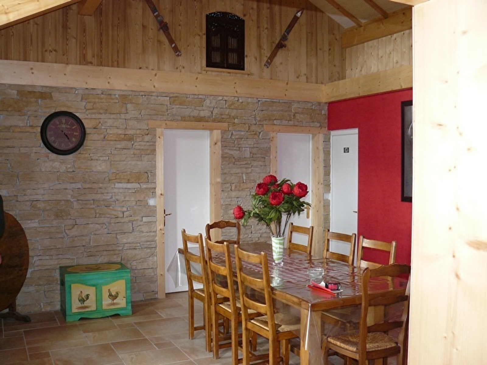 Sur les hauteurs du village et à proximité du golf, très jolie maison indépendante entièrement rénovée avec style. Cuisine-intégrée toute équipée, séjour, salon, ch1 : 1 lit 2 pl + TV, ch2 : 1 lit 2 pl + 2 lits 1 pl superposés + TV, salle d'eau (vaste douche italienne + lavabo double vasque), garage, terrasse, salon de jardin, terrain de boules, balançoires, , table de ping-pong. Chauffage central au gaz. Terrain attenant non clos.
