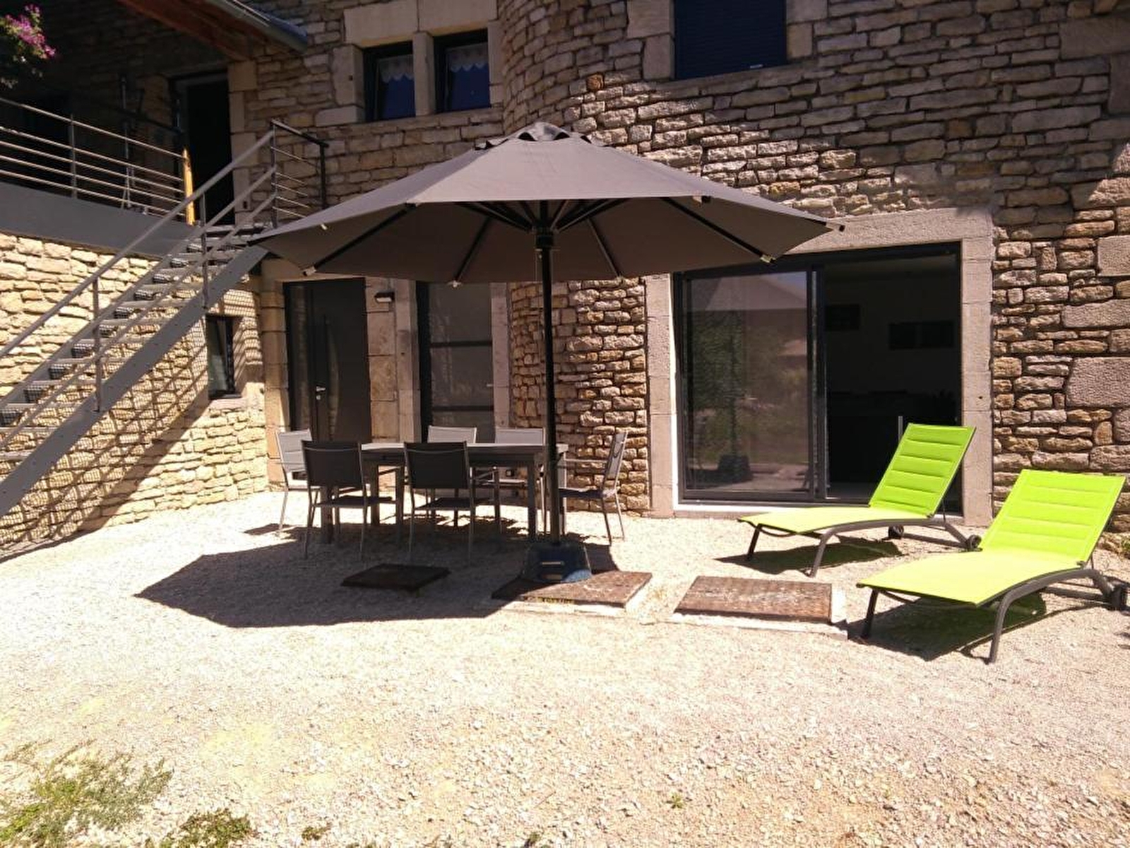 Dit appartement op de begane grond in een volledig gerenoveerd gebouw (een ander appartement bevindt zich op de 1e verdieping) bestaat uit een woonkamer met een volledig uitgeruste keuken, een zithoek met tv, 2 slaapkamers met elk een tweepersoonsbed (140x190), een doucheruimte en een apart toilet. Buiten is er een terras met tuinmeubilair, ligstoelen en een barbecue. Een gedeelde spa is beschikbaar (€50/verblijf). Privé parkeerplaats op het terrein. Voor uw comfort zijn de bedden opgemaakt bij aankomst. Mogelijkheid voor 1 of 2 extra personen op aanvraag (slaapbank in de woonkamer). Ideaal gelegen om 2 UNESCO werelderfgoederen te ontdekken: de Grand Saline de Salins les Bains en de Saline Royale d'Arc-et-Senans. Natuurliefhebbers worden niet overtroffen: wandelen, fietsen, paragliden, kanoën, kajakken en zwemmen zijn allemaal binnen 10 minuten rijden te bereiken. LET OP: gîte G2512 op de 1e verdieping kan geboekt worden voor maximaal 12 personen.