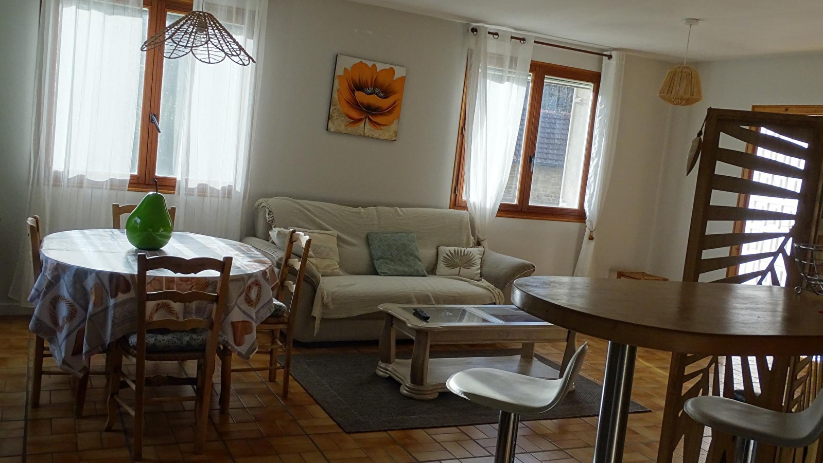 Dit gelijkvloerse huis in een charmant wijndorp bestaat uit een woonkamer met ingerichte keuken, een zitkamer met tv en pelletkachel, met directe toegang tot het terras, een slaapkamer met 2 uitschuifbare bedden, een tweede slaapkamer met een tweepersoonsbed, een badkamer met bad en een apart toilet. Buiten kun je genieten van de zonnige dagen op het terras, dat is uitgerust met tuinmeubilair, een plancha-grill en ligstoelen. Je bent ideaal gelegen om de beroemde dorpen Baume les Messieurs en Chateau-Chalon te verkennen, en om Jurassische wijnen te proeven in de omliggende kelders, met mate natuurlijk...