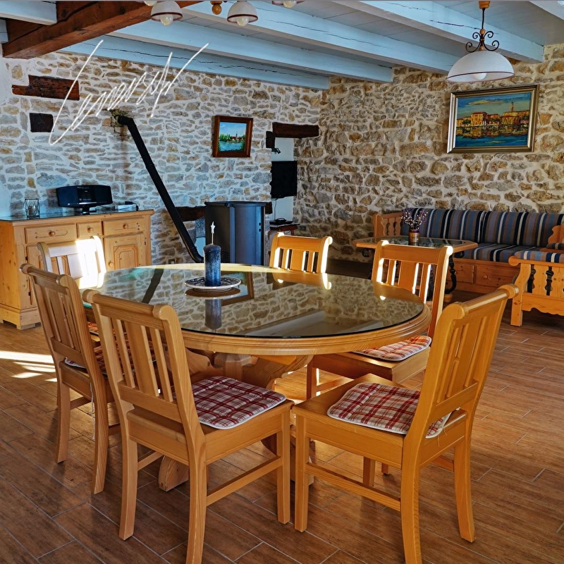 De gîte "Les Balcons du Lac" van 85m², op de eerste verdieping, heeft alle charme van de oude stenen en is geschikt voor 4 personen.