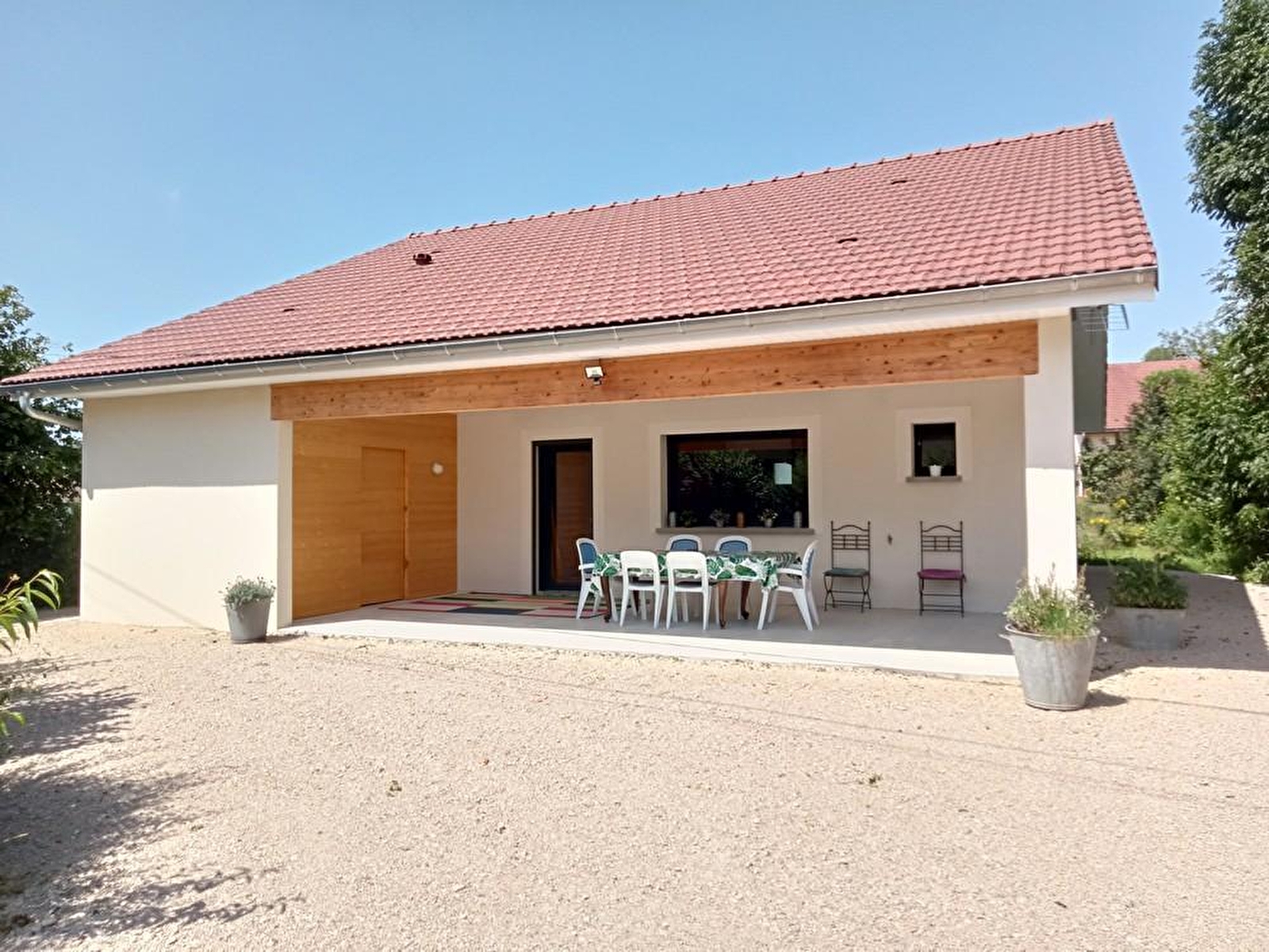 Kom en ontdek dit mooie vrijstaande huis, ideaal gelegen tussen de wijngaarden van de Jura en het Lake District, dicht bij toeristische attracties zoals Château-Chalon, Baume les Messieurs en de watervallen van Hérisson. De begane grond bestaat uit een grote woonkamer met volledig uitgeruste keuken, eetkamer en zithoek met bank en flatscreentelevisie. Een slaapkamer met een bed van 160x200. Doucheruimte met inloopdouche, aparte wc. Bijkeuken met wasmachine en bergruimte. Buiten, binnenplaats en heerlijk beschut terras met tuinmeubilair en barbecue. Sluis voor fietsen. Boek nu je verblijf!