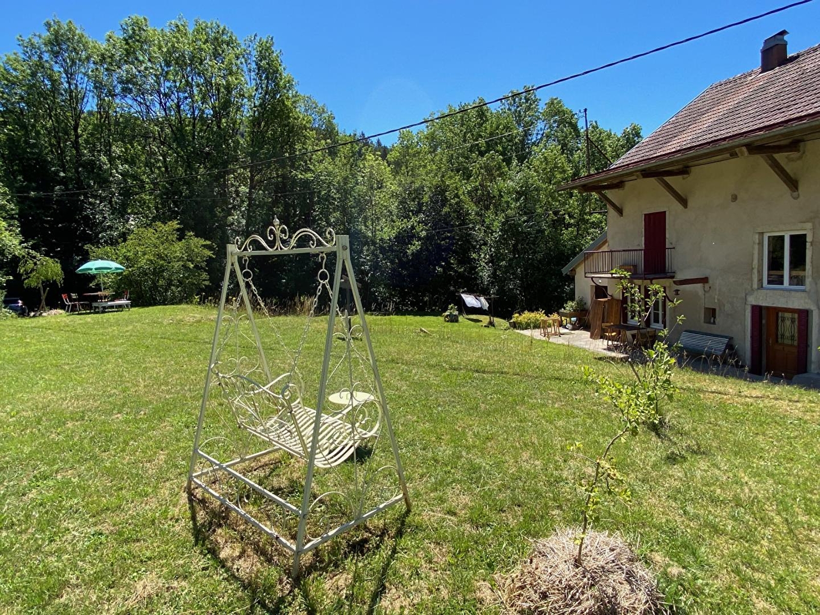 Groot, vrijstaand huis in Jura-stijl in een voormalige boerderij-draaierij uit 1889, met uitzicht over de vallei op 750 m hoogte. Het is omgeven door groen op een groot, niet omheind, bebost perceel, begrensd door de rivier en de watervallen van de Héria. -Begane grond: mooie entree, volledig ingerichte keuken, eetkamer, zitkamer met open haard en vele gezelschapsspellen. Grote badkamer met bad, wasmachine en droger. Aparte WC. -1e verdieping: 3 slaapkamers, doucheruimte-WC en een grote mezzanine met tafelvoetbal en bibliotheek - 2e verdieping: 2 slaapkamers, doucheruimte-WC - Aangebouwde gelijkvloerse garage - Parkeerplaats. Buiten, tuinmeubelen en BBQ. Diverse ontspanningsmogelijkheden met schommel, bankjes, kinderspeelplaats, watervallen op de rivier Héria en bos.