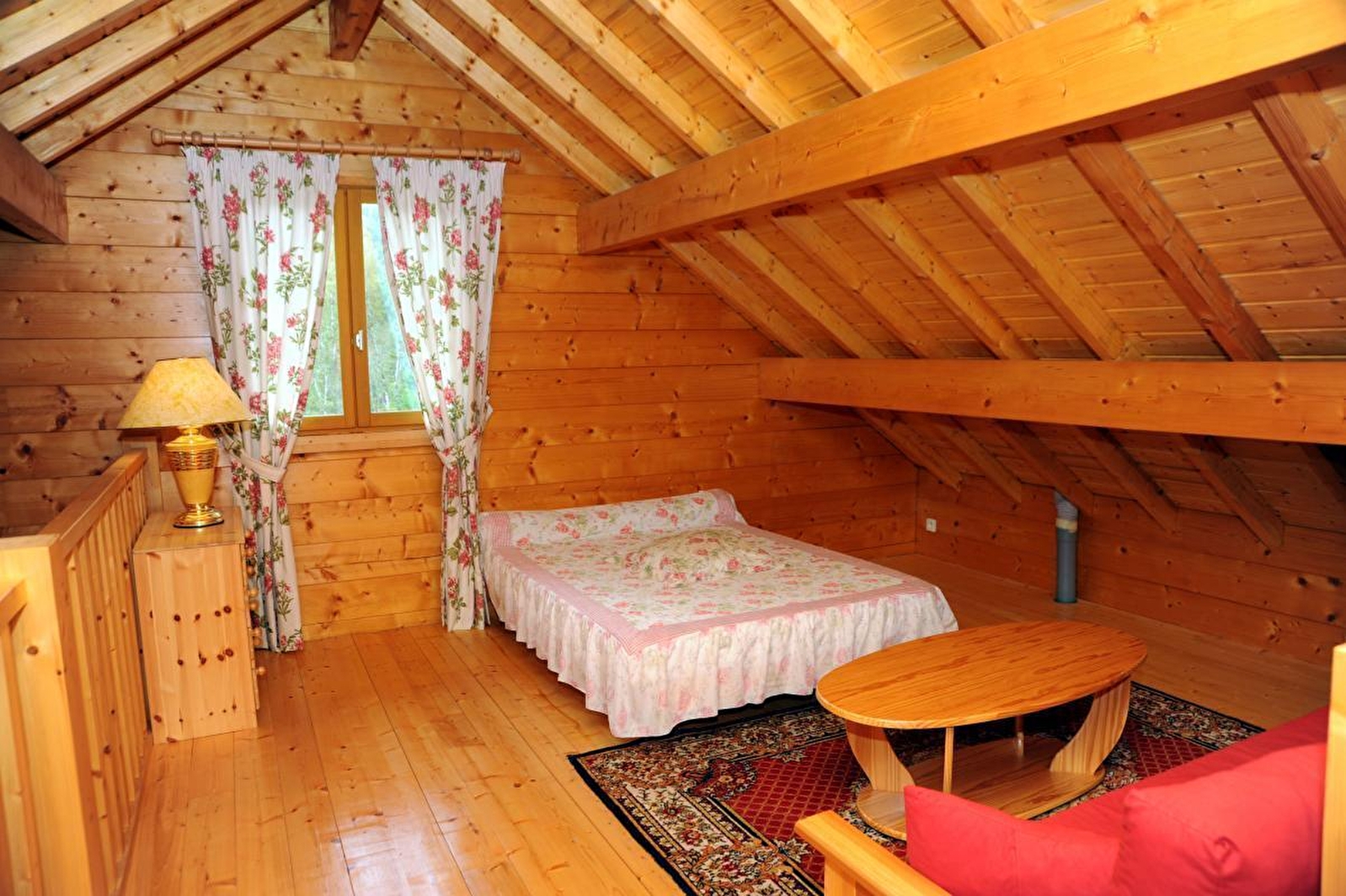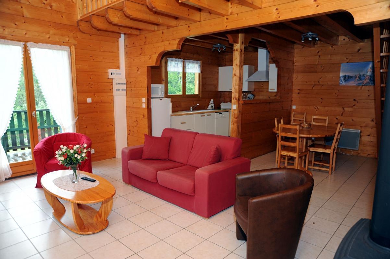 Dans un village situé à toute proximité des plages du domaine de Chalain (lac naturel aménagé) avec base de loisirs, tous les commerces de proximité sur place, ensemble de 4 chalets identiques sur la même parcelle. Votre chalet (les gentianes) comprend au RDC: pièce de jour et détente avec coin cuisine aménagé à l'américaine, salon avec canapé, salle d'eau, wc, 1 chambre avec 1 lit 2 personnes. A l'étage: mezzanine avec 1 lit 2 personnes. 1 chambre avec 2 lits 1 personne, 1lit bébé.Micro-ondes,Tv,téléphone à carte(mobicarte). Parking privé, terrasse privative(exposée sud).Local à vélo privé,loc de draps:7€,salon de jardin