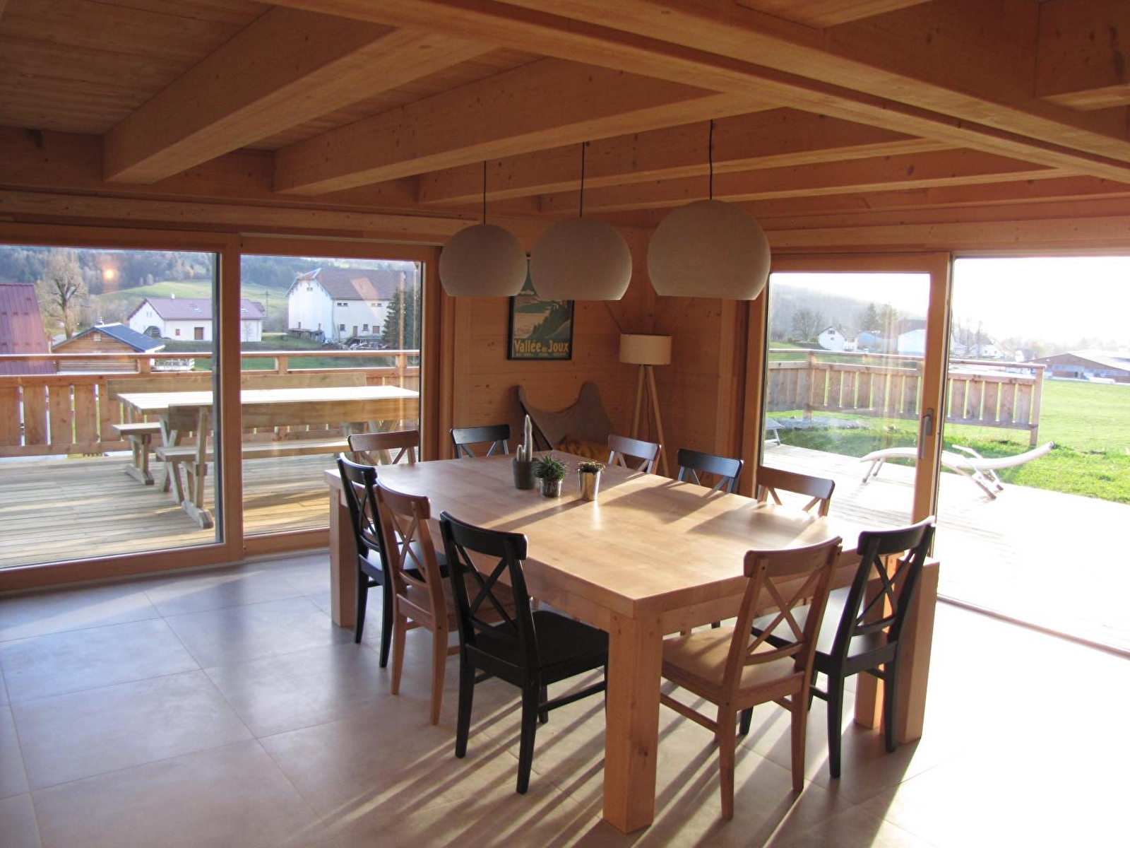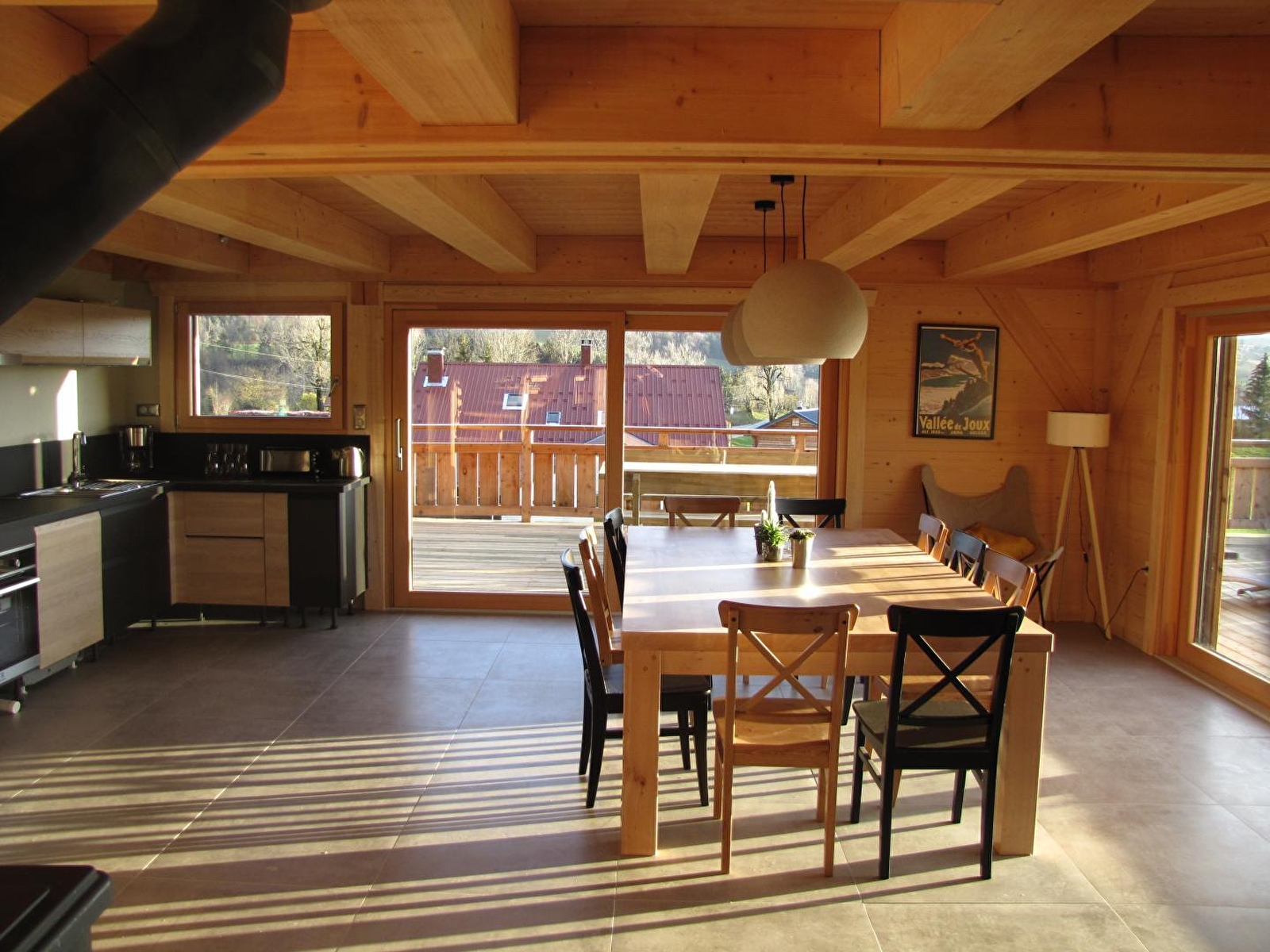 In het hart van de Haut Jura, op de hoogten van het dorp, vrijstaand chalet met prachtig uitzicht op het omringende landschap. Begane grond: grote woonkamer met volledig ingerichte keuken en zithoek met bank en flatscreentelevisie. Slaapkamer met 180cm bed. Doucheruimte met inloopdouche. Aparte WC. Op de eerste verdieping, twee slaapkamers met elk 3 eenpersoonsbedden (90x200cm) (mogelijkheid om bedden te combineren op aanvraag), en een vierde slaapkamer met een eenpersoonsbed (180cm). Doucheruimte met dubbele wastafels, inloopdouche en wc. De kelder heeft een ontspanningsruimte met twee relaxfauteuils, sauna en inloopdouche. Afgesloten privégarage voor twee auto's. Buiten is er een terras van 80m² met tuinmeubelen, ligstoelen en barbecue, en aangrenzend een niet omheind terrein. Boek nu!