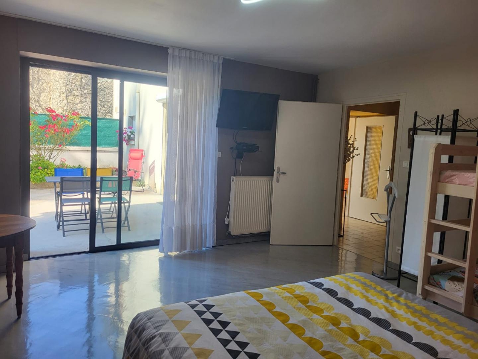 In het hart van het dorp, dit halfvrijstaande huis van één verdieping (met eigenaar) bestaat uit een volledig uitgeruste keuken, een woonkamer met slaapbank en tv met directe toegang tot het terras, een slaapkamer met 1 bed van 160 cm en 2 stapelbedden, en een doucheruimte met douche en apart toilet. Buiten is er een terras met tuinmeubels, elektrische zonwering, ligstoelen en barbecue. Parkeerplaats tegenover de gîte. Fietsenstalling beschikbaar op het terrein Ideaal gelegen, de dorpswinkels - slager, kruidenier, tabakswinkel, groenteboer, enz. - zijn allemaal op loopafstand van de gîte, die ook op slechts tien minuten rijden van het meer van Chalain ligt en op twintig minuten van de beroemde dorpen Baume les Messieurs en Chateau-Chalon. Gîte toegankelijk voor PBM.