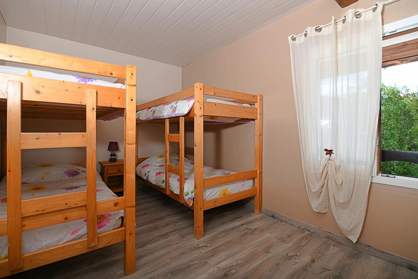 Pascale en Bernard heten je 's zomers en 's winters welkom in het hart van het skigebied Les Rousses. Deze gîte bevindt zich op de eerste verdieping van een oude boerderij uit de Jura, op hetzelfde niveau als de andere accommodaties (G1968) en bestaat uit een woonkamer met keukenhoek, eethoek en ontspanningsruimte, doucheruimte met douche en gescheiden WC, slaapkamer 1: 1 tweepersoonsbed, slaapkamer 2: 4 eenpersoons stapelbedden. Grote aangrenzende, niet omheinde gemeenschappelijke tuin. Tuinmeubels en privé-barbecue. Gratis lakens. Schoonmaakkosten € 60. Afnemend tarief afhankelijk van het aantal weken. Mogelijkheid voor 2 extra personen.